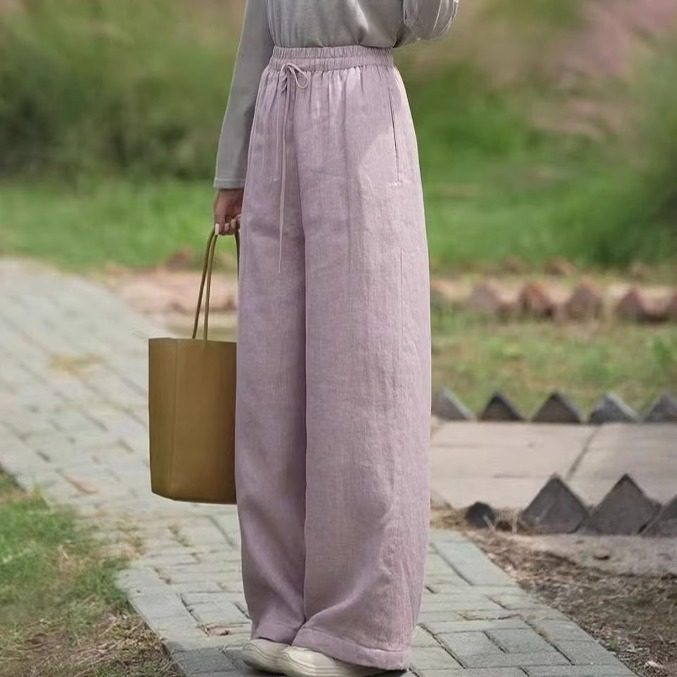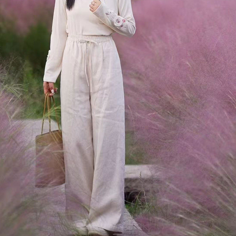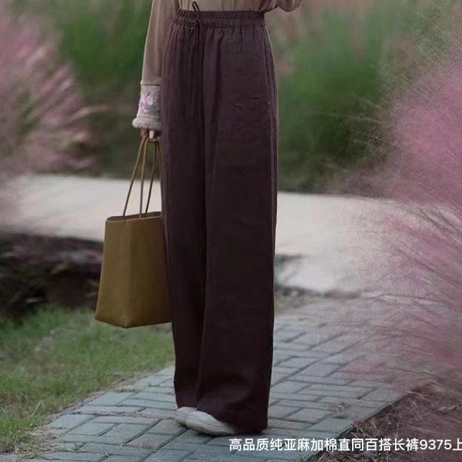 梅子家国风亚麻加棉保暖直筒棉裤2025新款女士冬季显瘦百搭长裤
