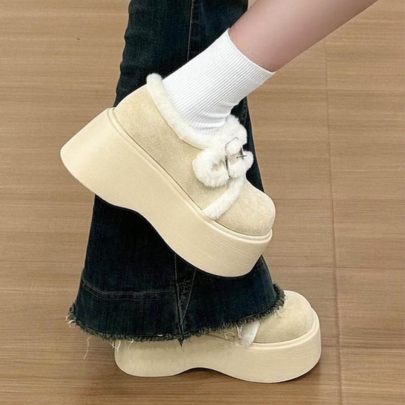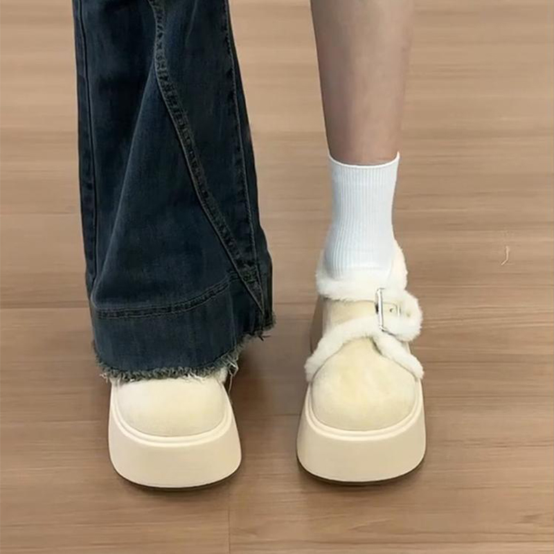 miu家厚底雪地靴女冬季真皮短靴羊毛侧拉链增高厚底加绒毛毛棉鞋