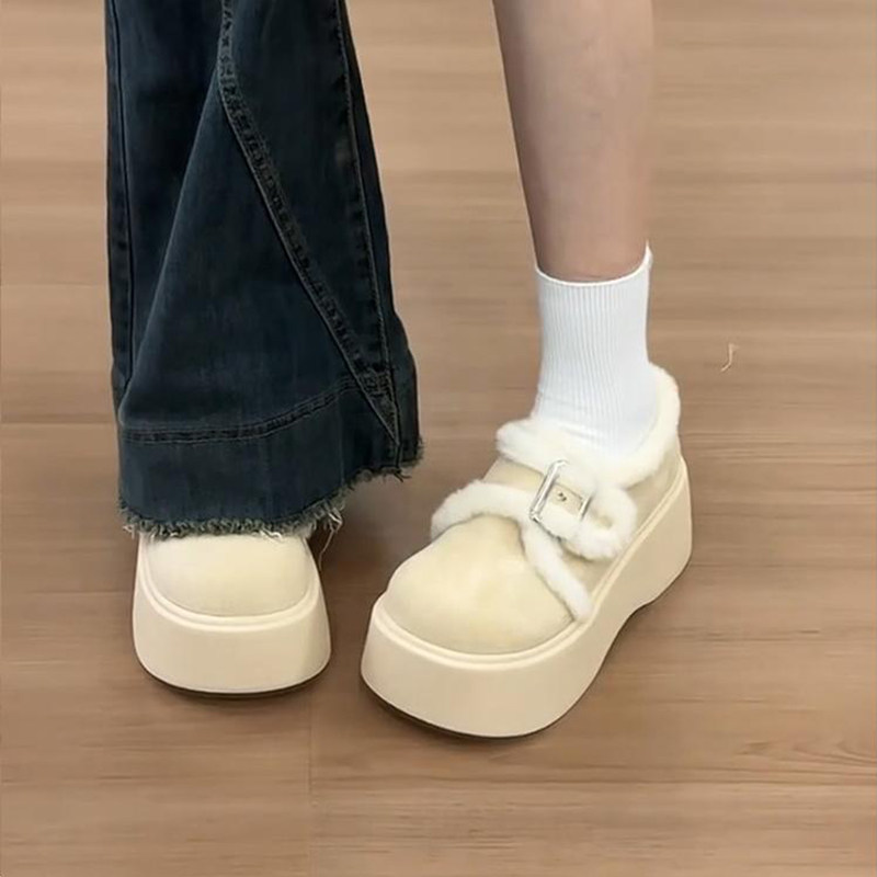 低帮厚底雪地靴女2025新款冬季懒人一脚蹬毛毛棉鞋加绒加厚女鞋子