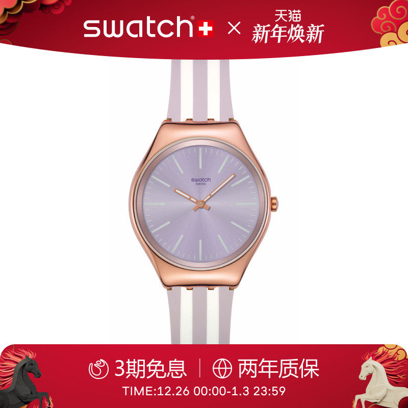 Swatch斯沃琪瑞士手表新款时尚条纹纤薄静音男女彩盘腕表新年礼物
