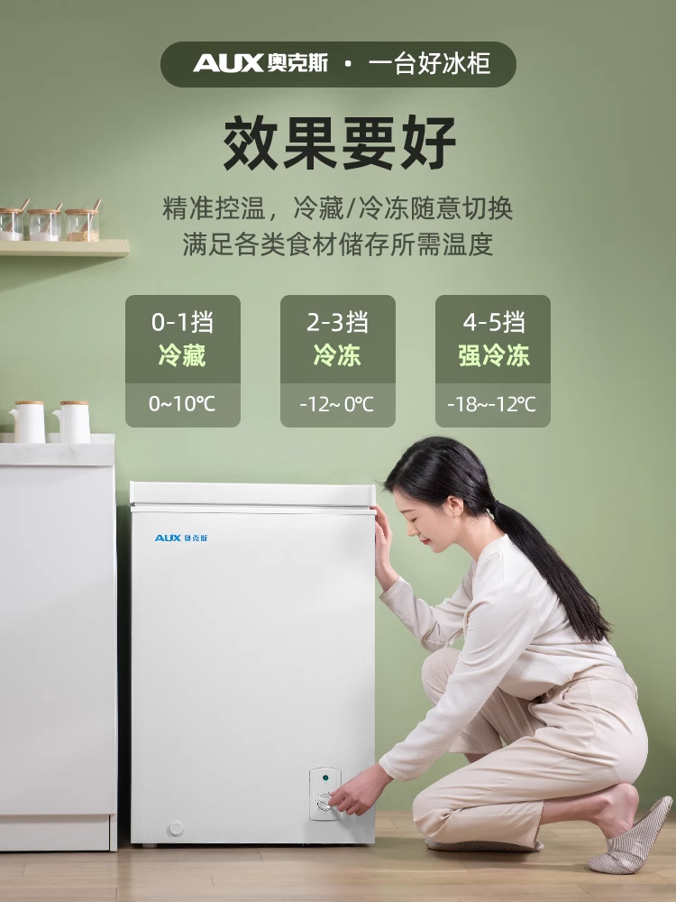 奥克斯冰柜家用小型全冷冻冷藏保鲜两用迷你箱省电商用大容量冷柜