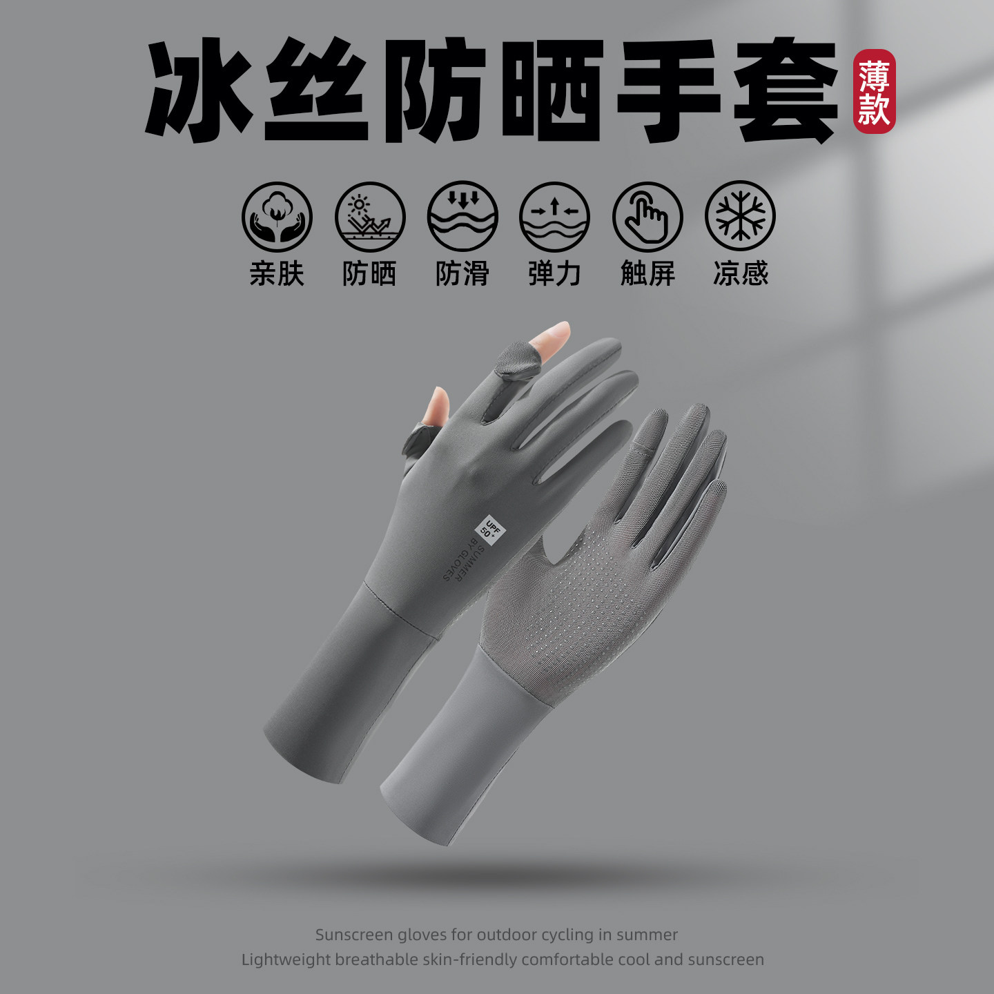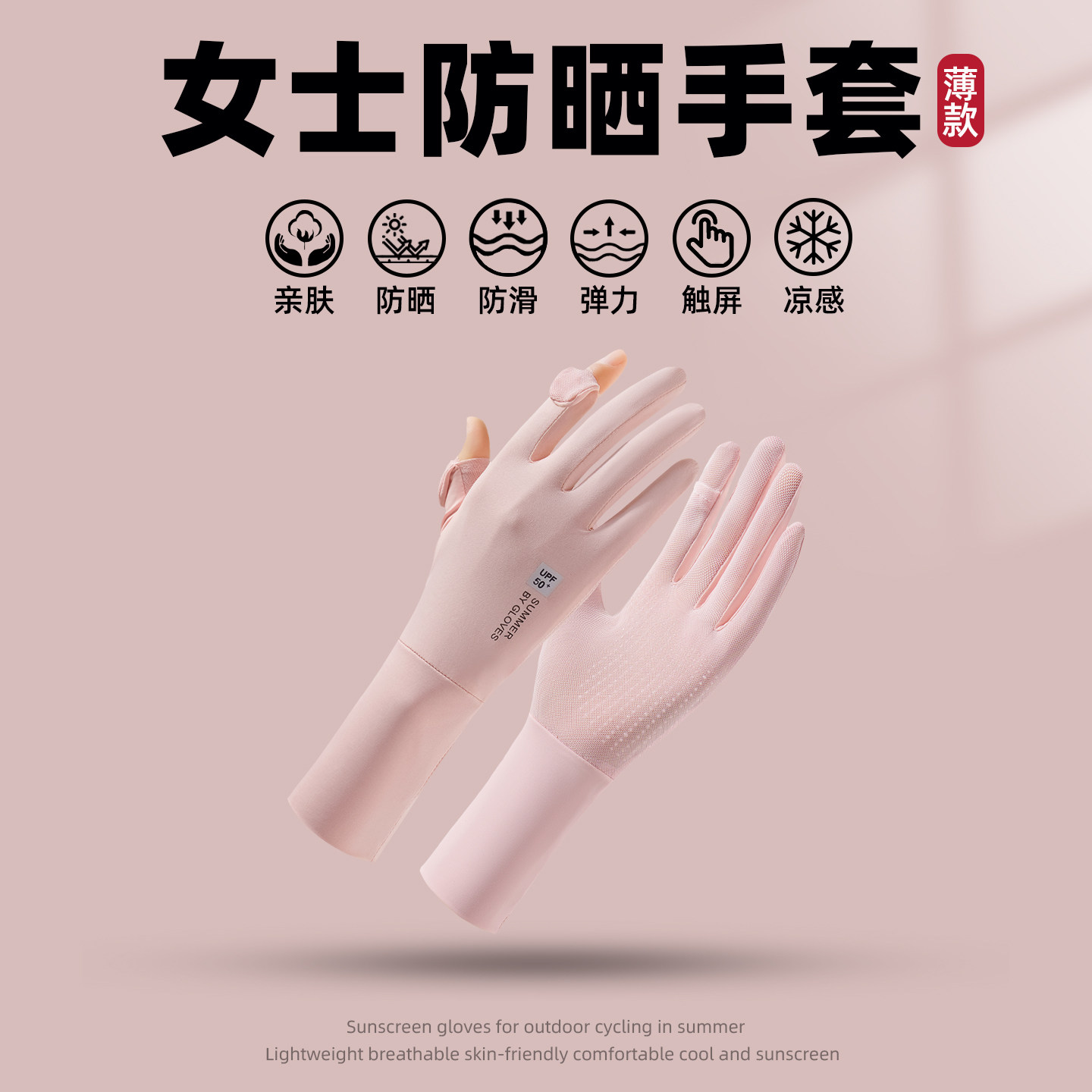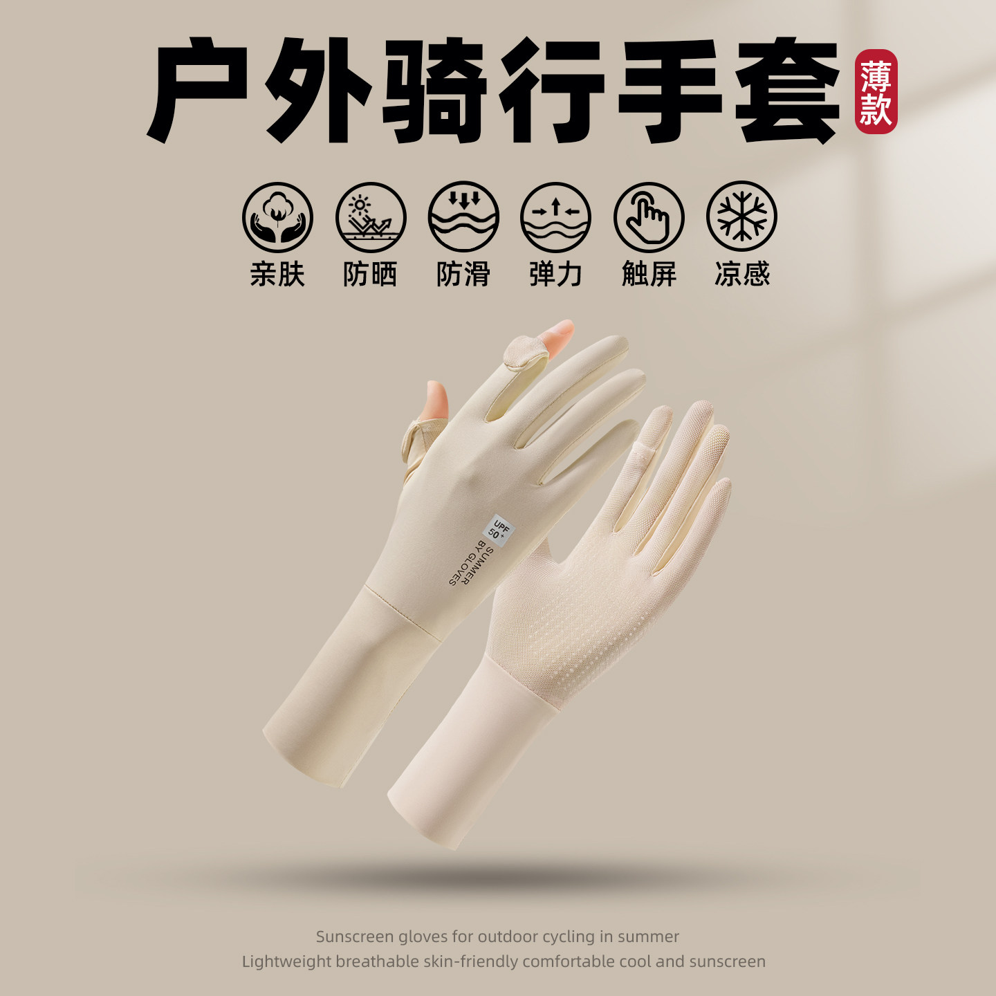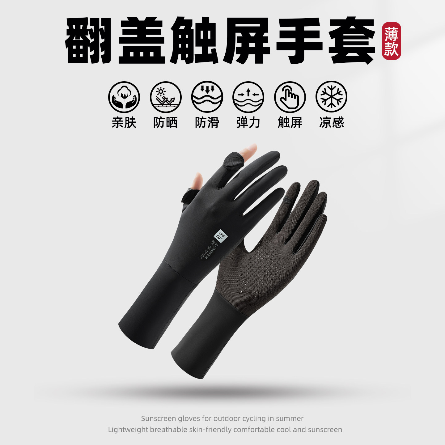 夏季防晒手套户外骑行防滑翻盖触屏防紫外线女士冰丝薄款透气手套