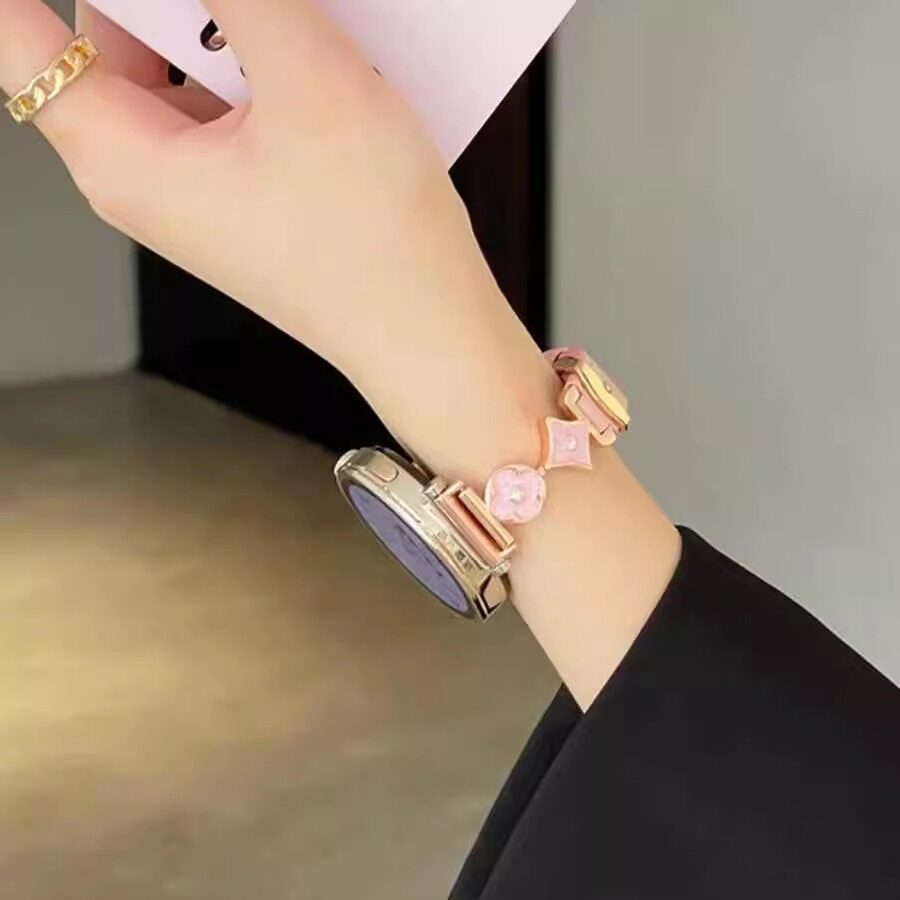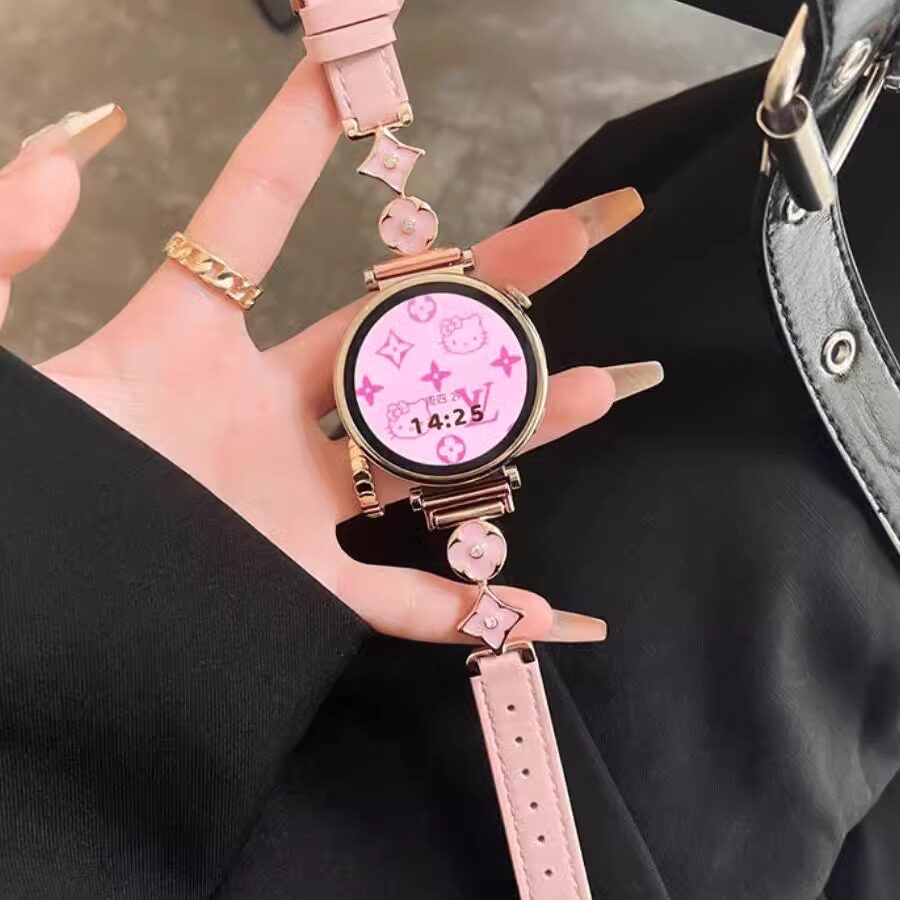 适用三星Galaxywatch8/7/6/5/4手表带头层牛皮十字花真皮高级感女