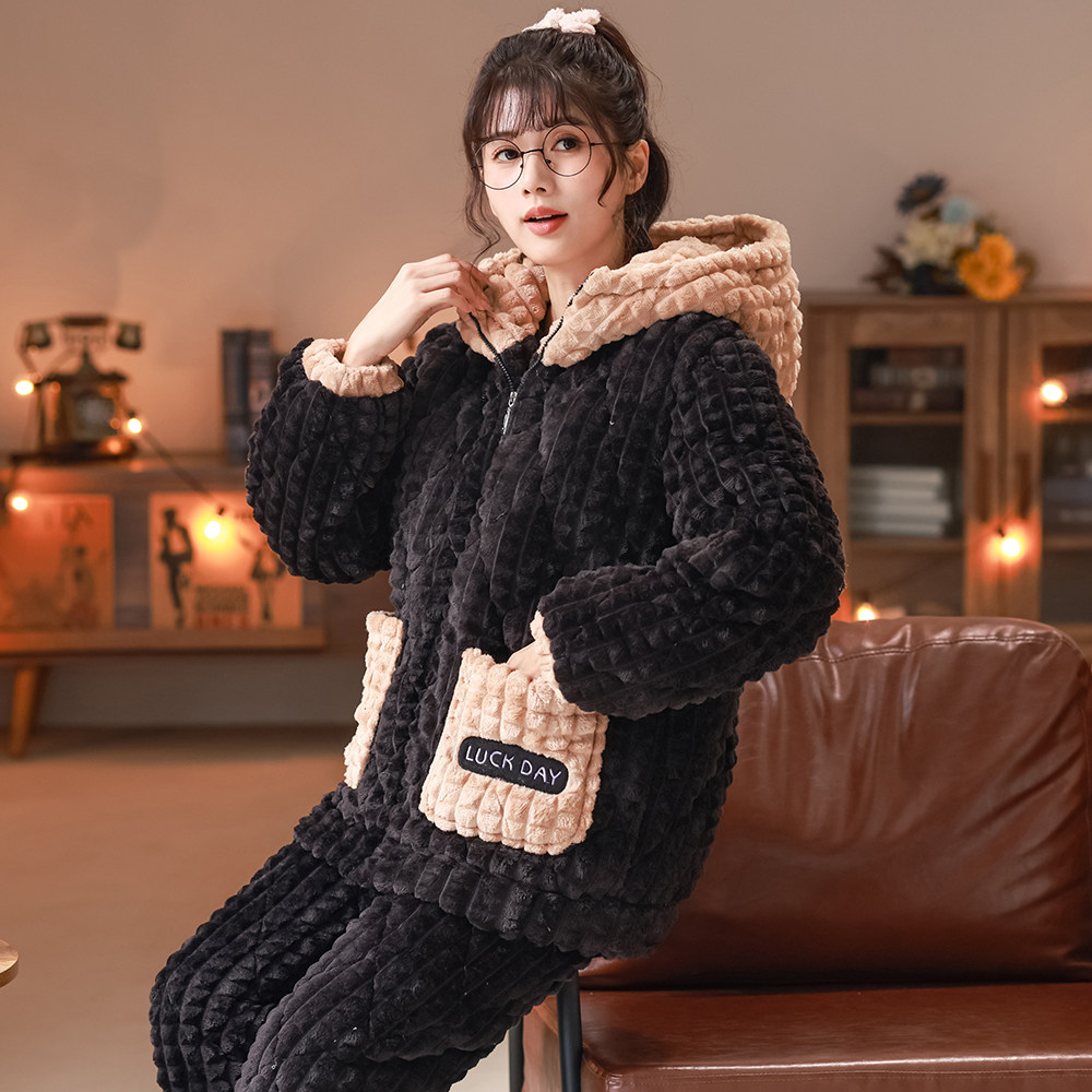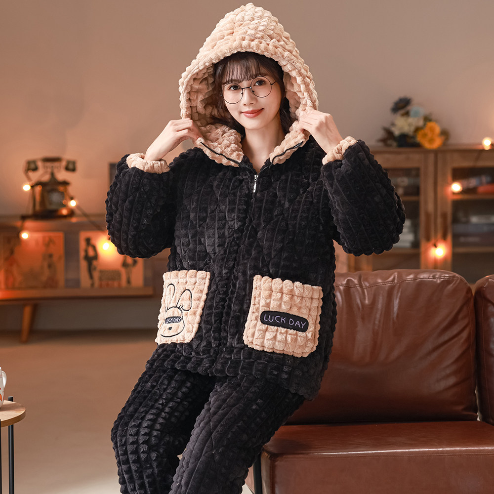 2025年冬款珊瑚绒睡衣女秋冬季加厚法兰绒加绒套装家居服春秋新款