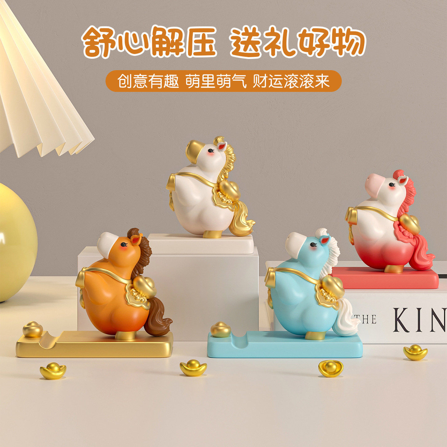 2026马年吉祥物生肖小马摆件支架桌面装饰品马上有钱公仔礼物