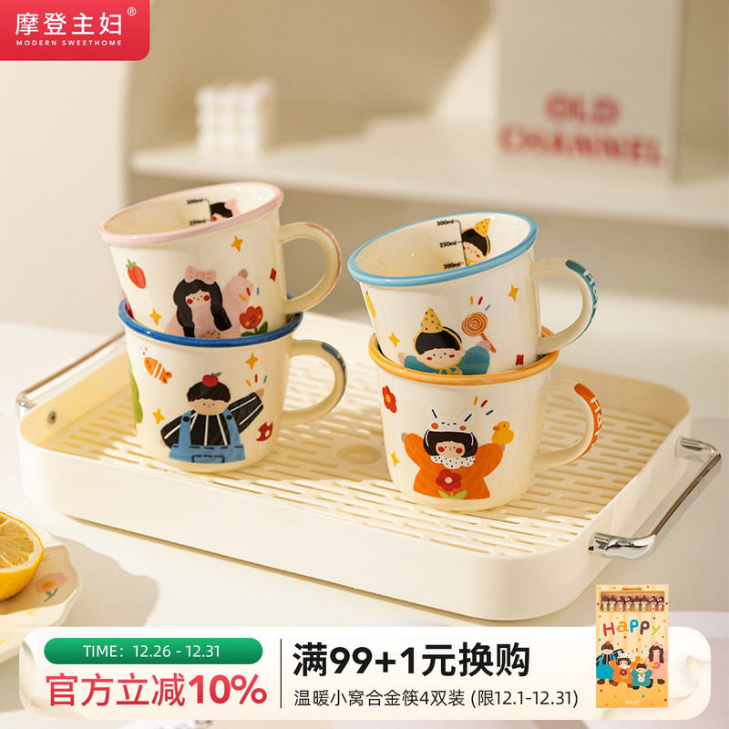 摩登主妇一家三四口马克杯儿童杯子家用陶瓷杯亲子水杯套装牛奶杯