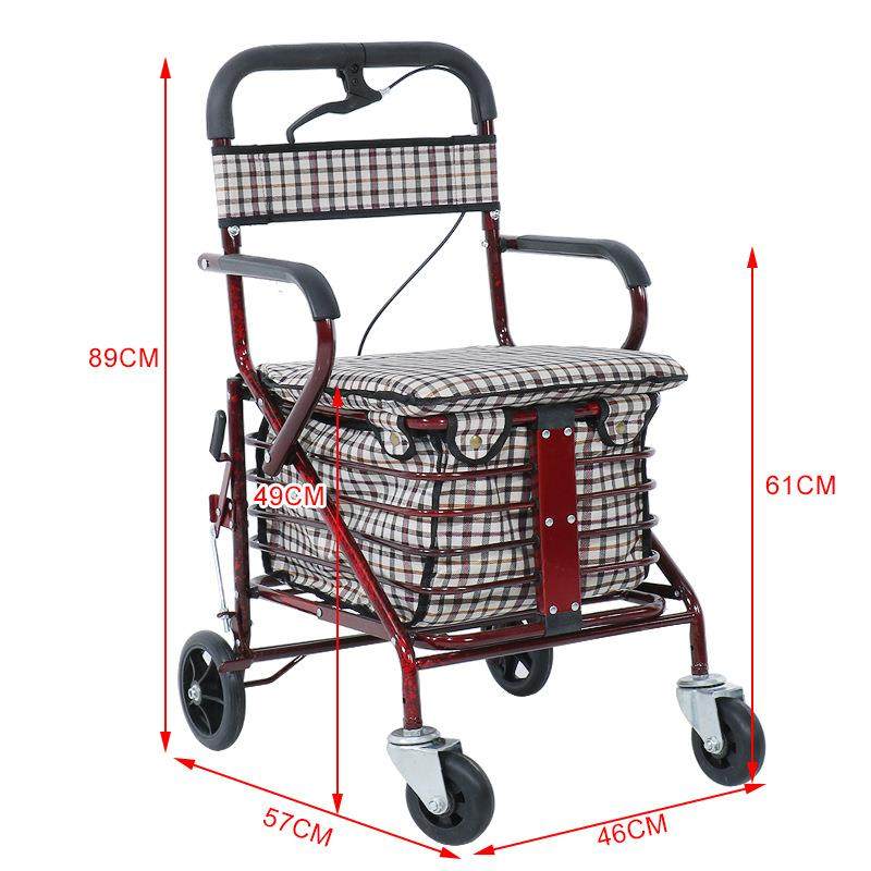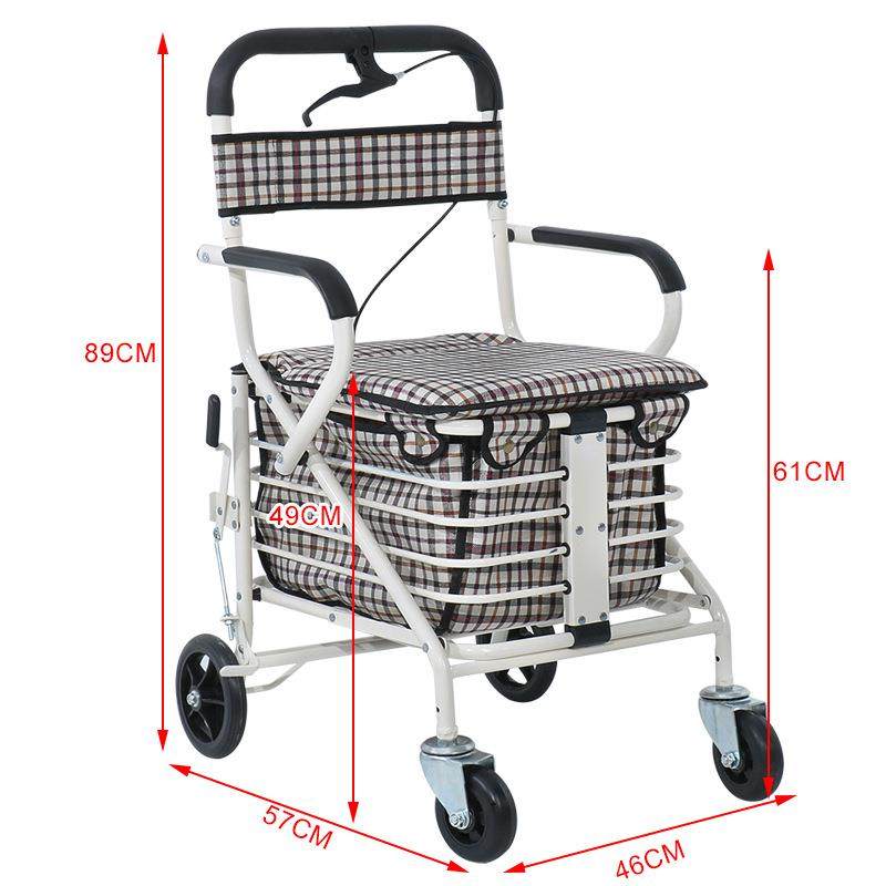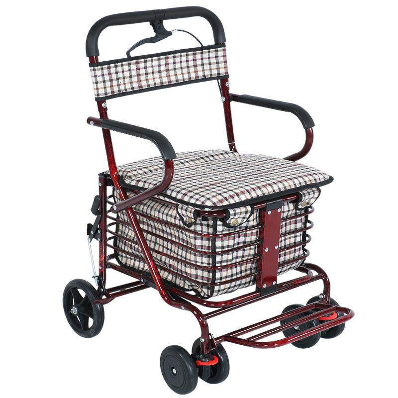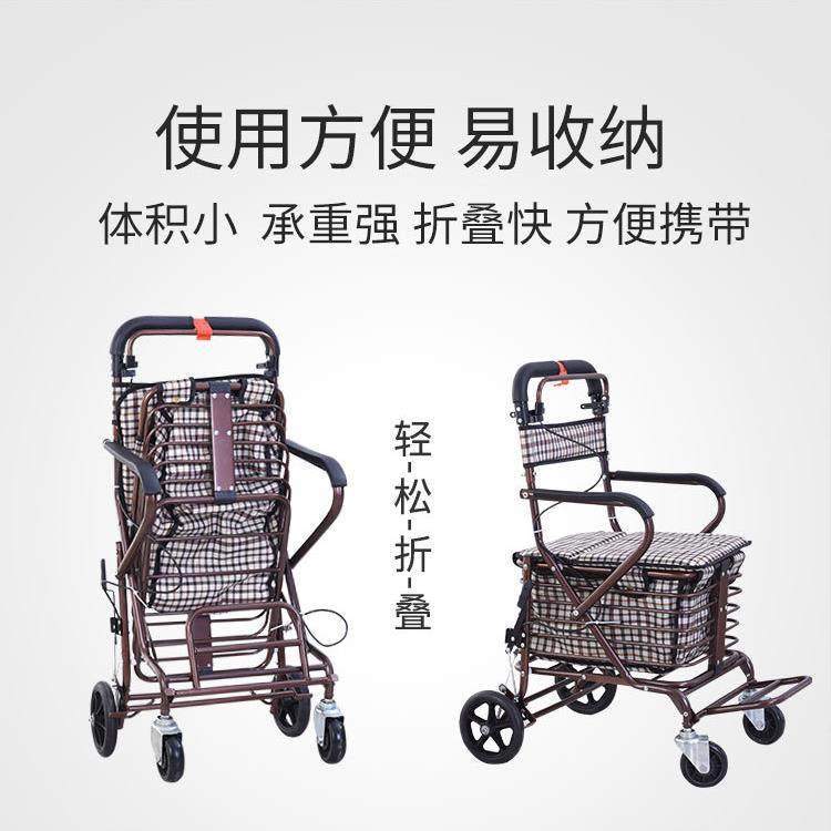 老人手推车可坐折叠代步助力购物小推车老年人坐的能推走的软椅子拉车套罩