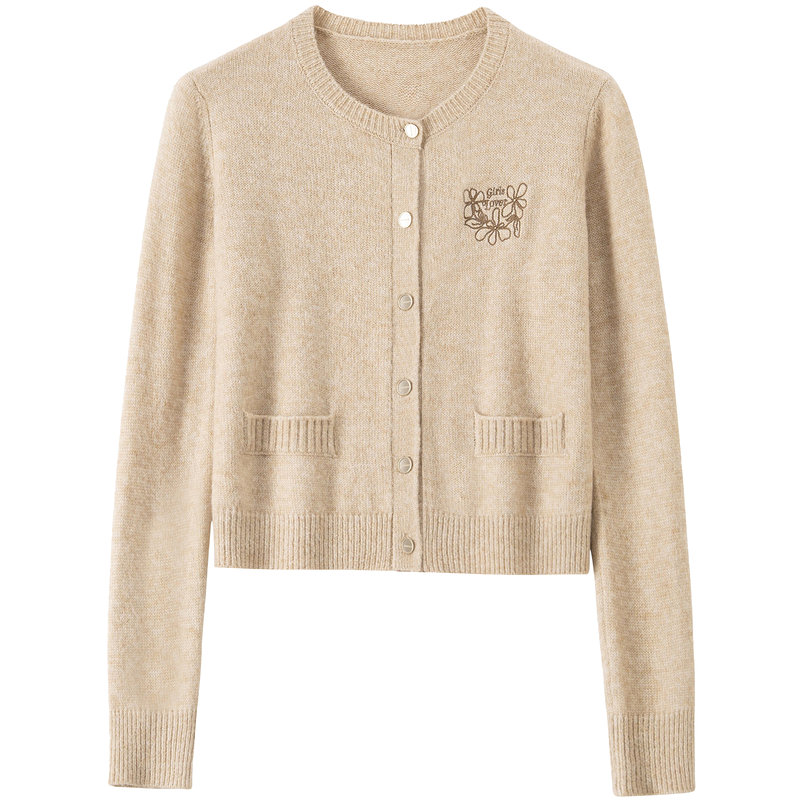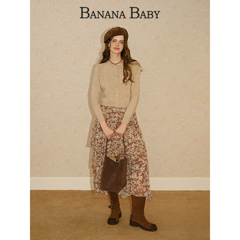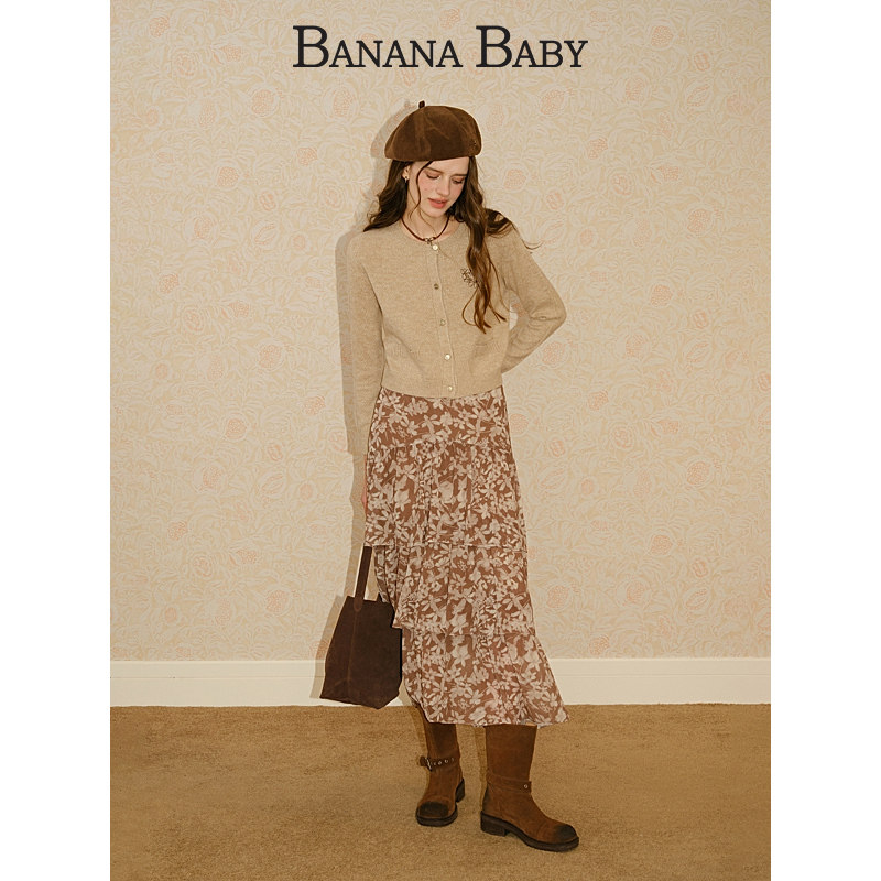 【绵羊毛】BANANA BABY2025年冬季新款文艺慵懒风针织开衫女刺绣