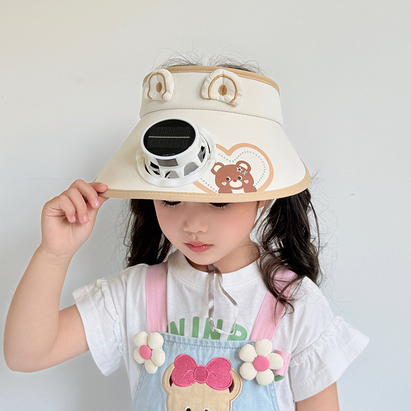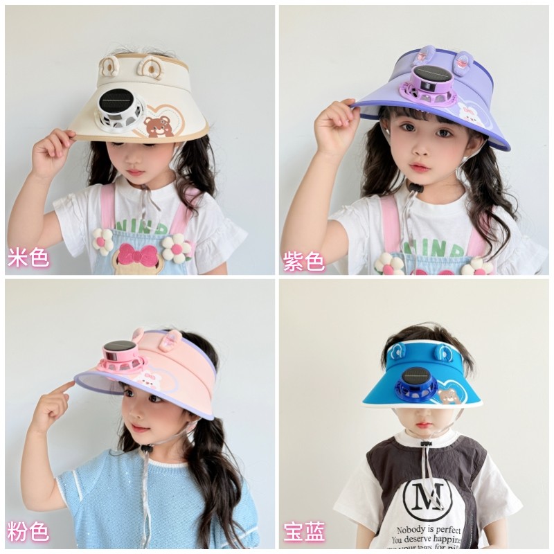 太阳能风扇帽子儿童防晒帽男童女童夏季防紫外线空顶帽宝宝遮阳帽