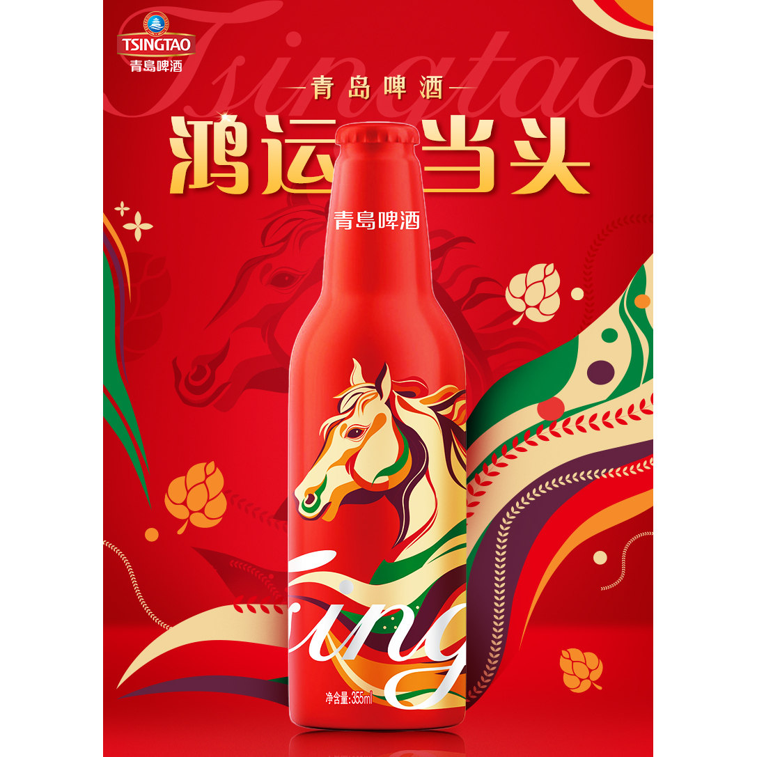 【过年送礼】青岛啤酒鸿运当头355ml*12罐马年生肖青岛产青岛发货