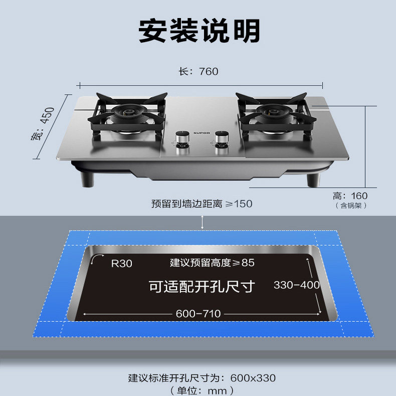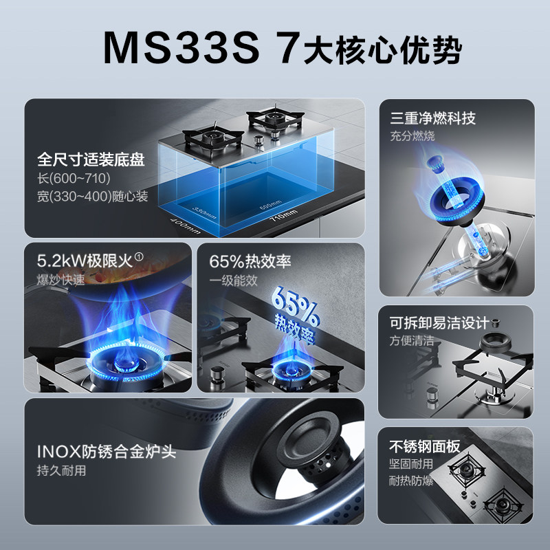 苏泊尔MS33S不锈钢防爆燃气灶猛火双炉灶具天然液化煤气嵌入台式