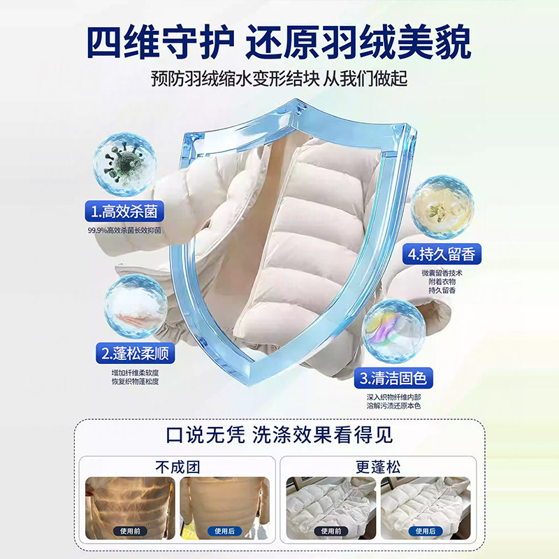 羽绒服云感蓬松洗涤剂清洗洗衣机清洁机干洗专用洗衣液去污渍神器