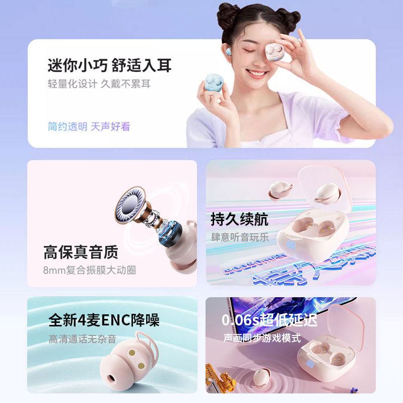 倍思wm02蓝牙耳机2025新款无线高音质入耳式降噪睡眠运动女长续航