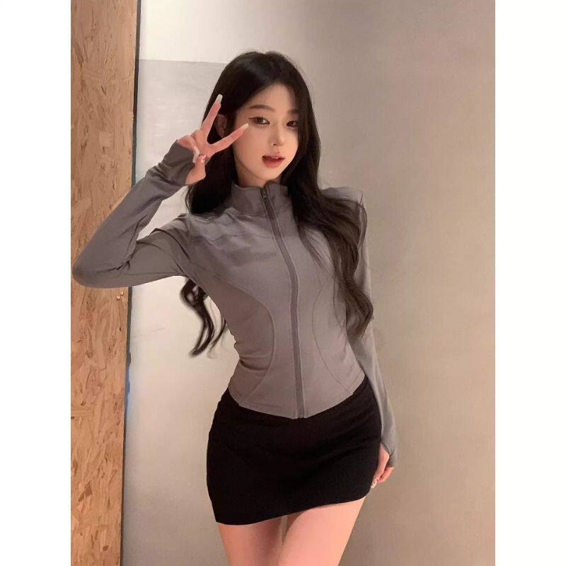 女士跑步瑜伽服外套春季款修身女款运动长袖上衣收腰健身服速干
