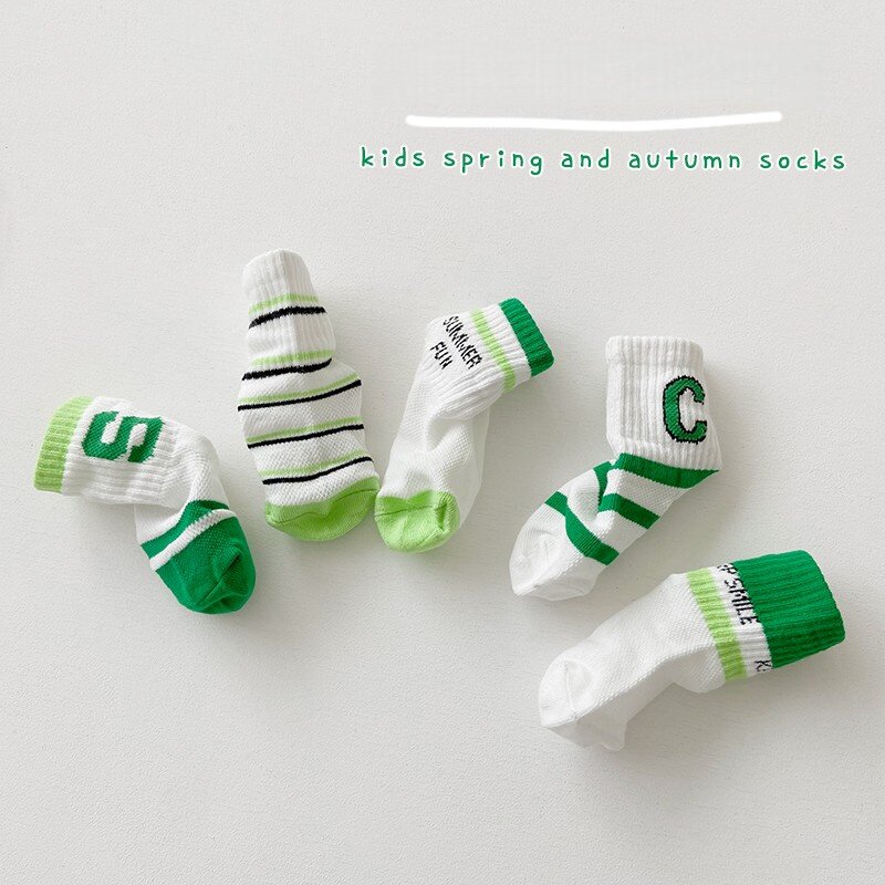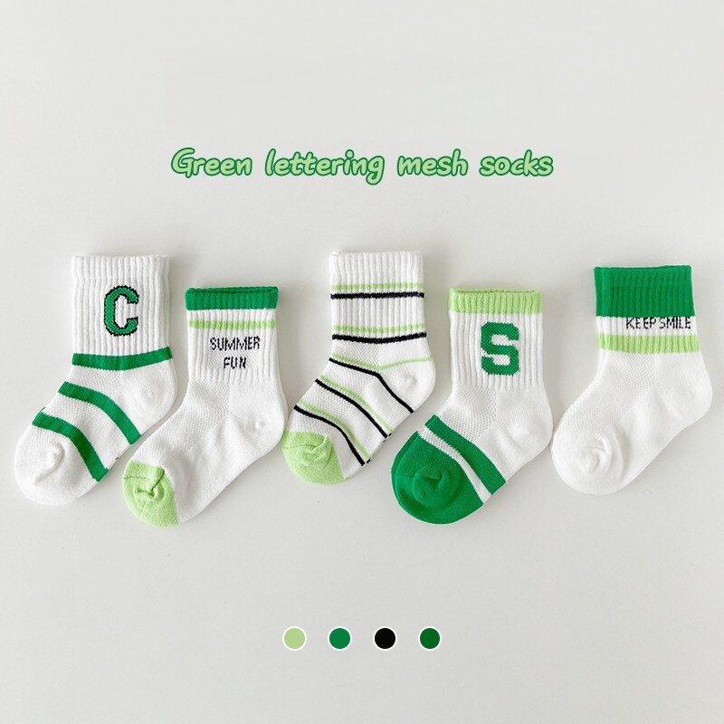男童袜子春夏季薄款网眼棉袜女童运动中筒儿童袜绿色宝宝童袜