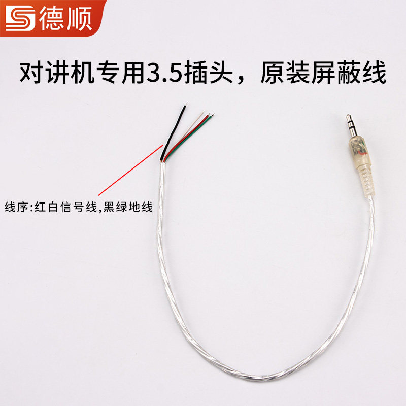德顺窗口对讲机 原装音频线 3.5公头转悬空裸线带四芯屏蔽线