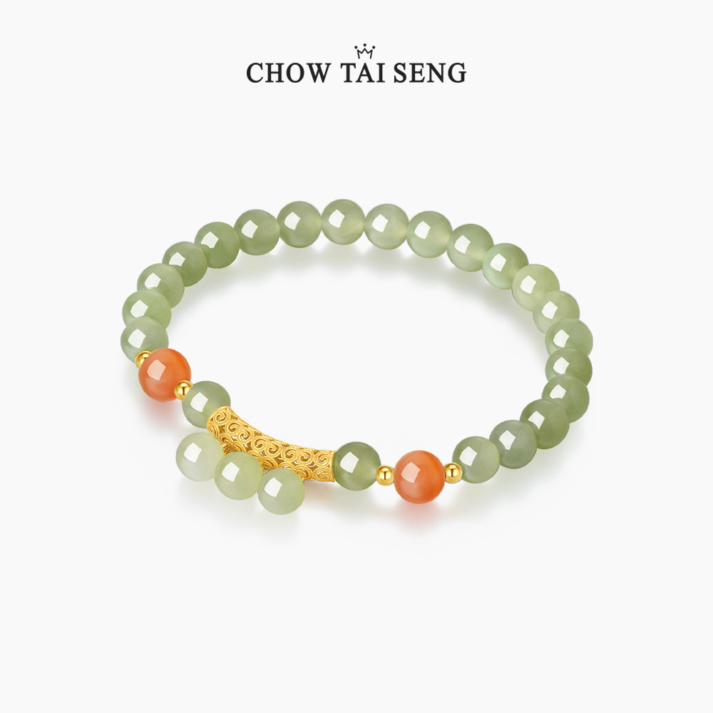 周大生和田玉手串925纯银手链女款玛瑙轻奢高级感生日礼物送女友
