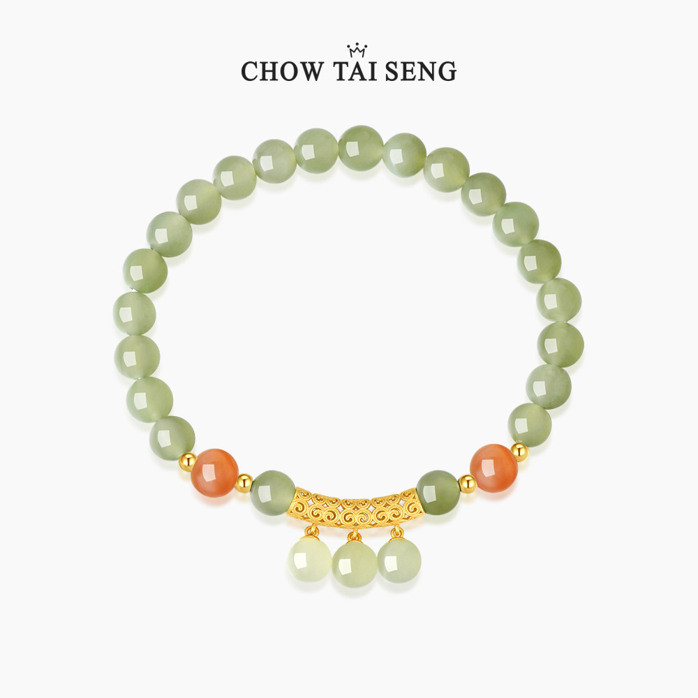 周大生福运莲莲碎银子手链女款纯银和田玉轻奢小众生日礼物送女生