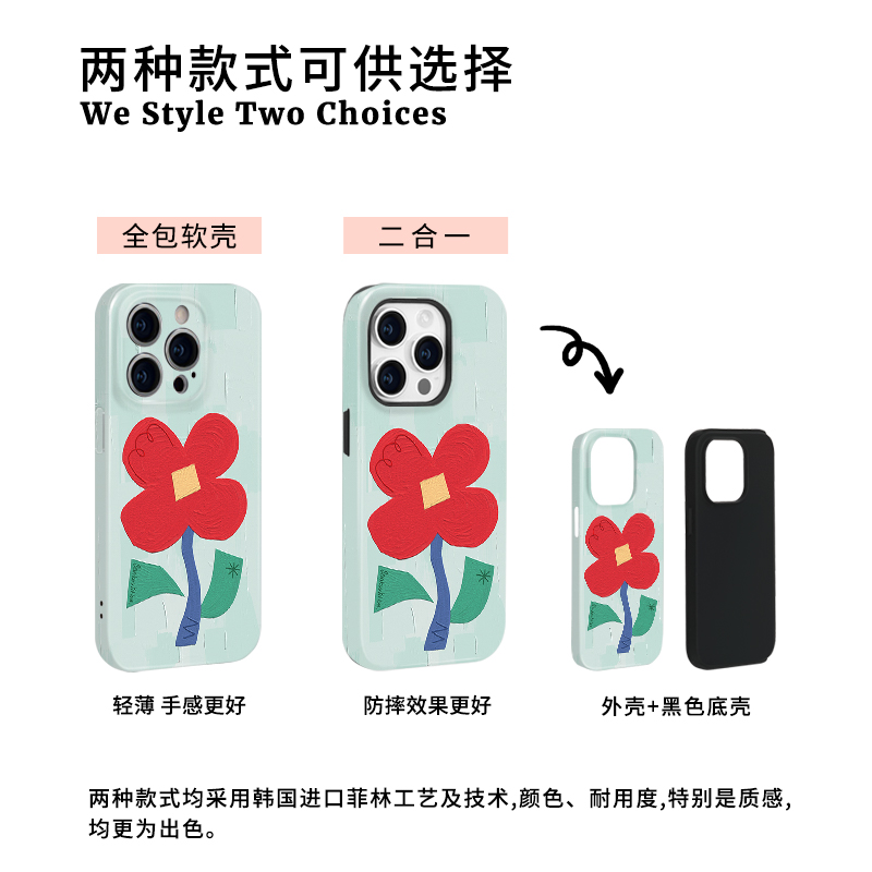 一朵红花 适用iPhone16苹果17promax手机壳新款15女生简约ins小众14艺术感13独特超好看pura80华为mate70pro