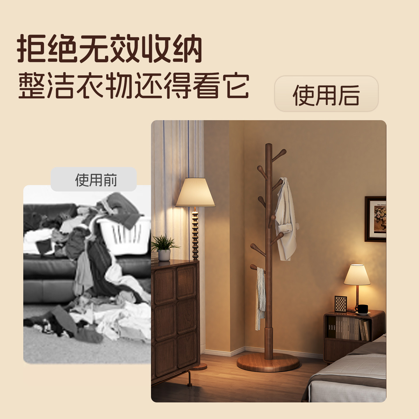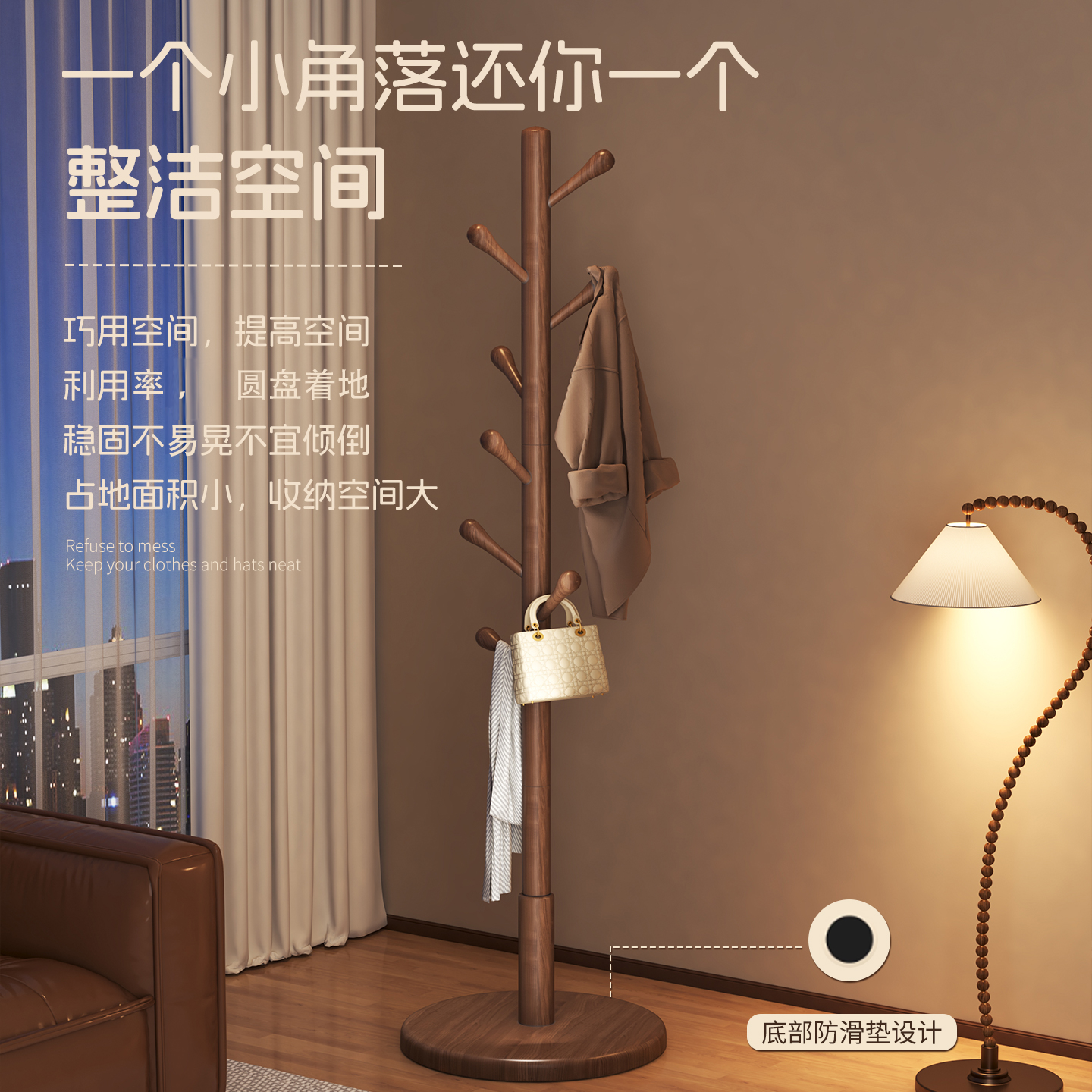 中式实木衣架落地衣帽架客厅卧室家用加粗立杆式晾挂衣服包的架子