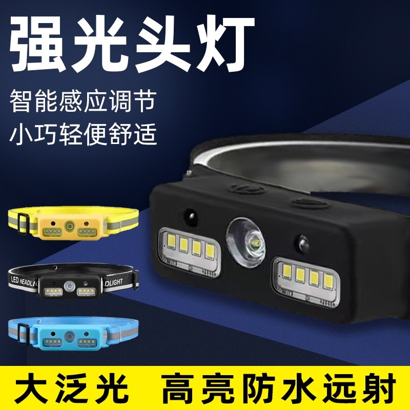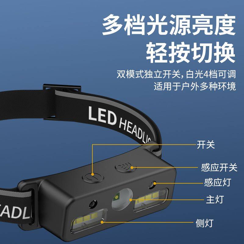 强光头灯长续航头戴式感应灯钓鱼夜骑便携户外灯野外应急照明路灯