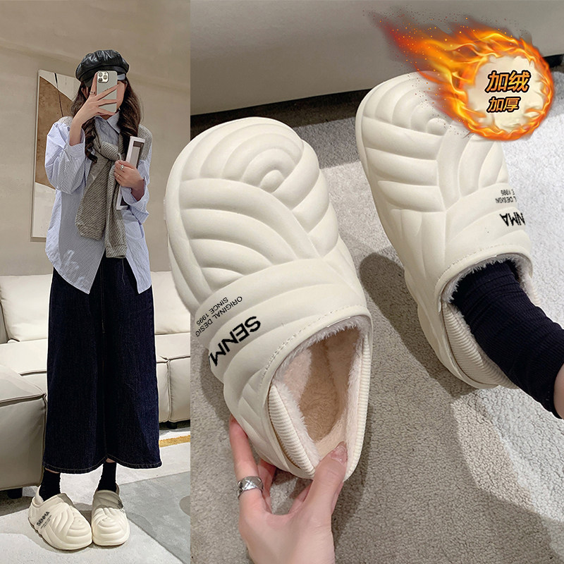 SENMA/森马森马2025新款防滑保暖加厚加绒厚底洞洞鞋雪地棉鞋女款