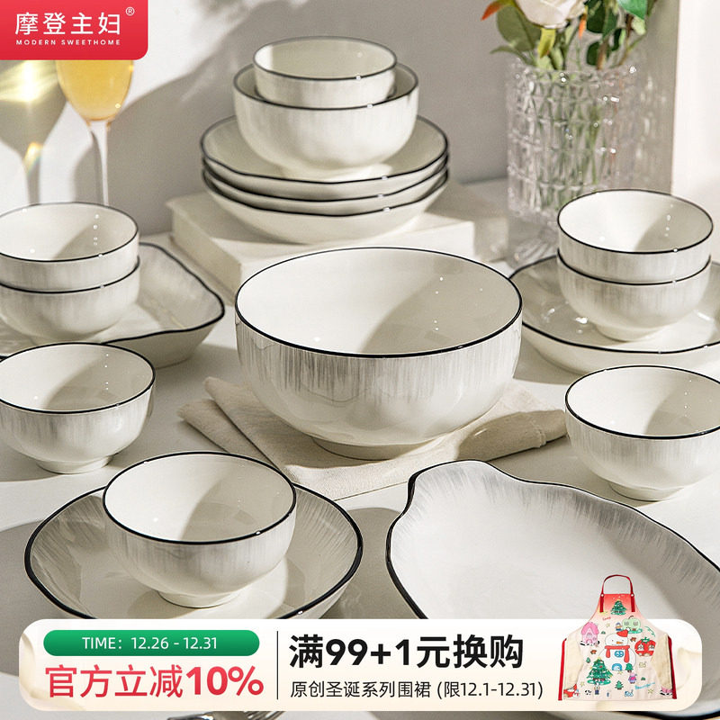摩登主妇餐具2025新款釉下彩乔迁新居高颜值碗具碟筷碗盘套装家用