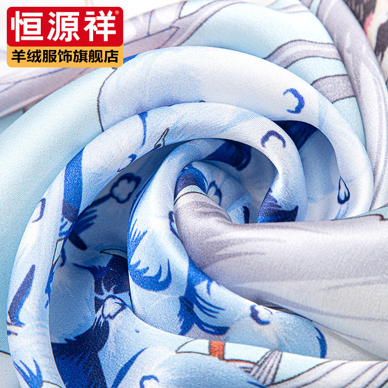 清仓恒源祥印花真丝领巾桑蚕丝丝巾女百搭西装小方巾气质薄款围巾