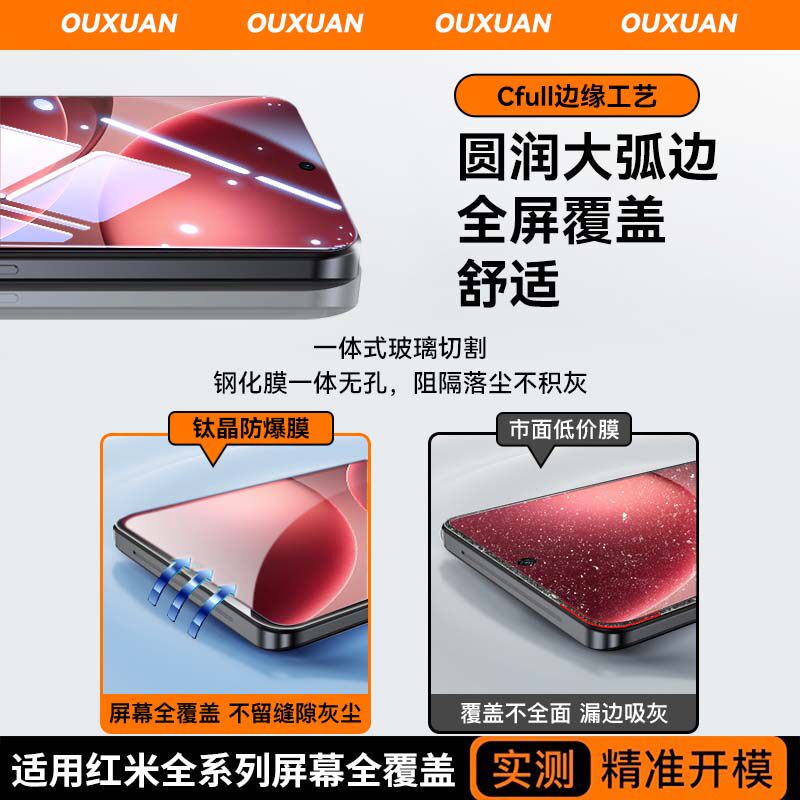 [超龙晶秒贴]第一卫适用小米17promax钢化膜15pro手机膜14红米k90/80/70/13防窥note12至尊版s新款ultra保护