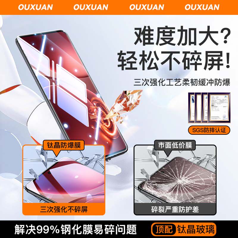 泰坦钛晶防爆 全屏覆盖 贴坏包赔 指纹秒解