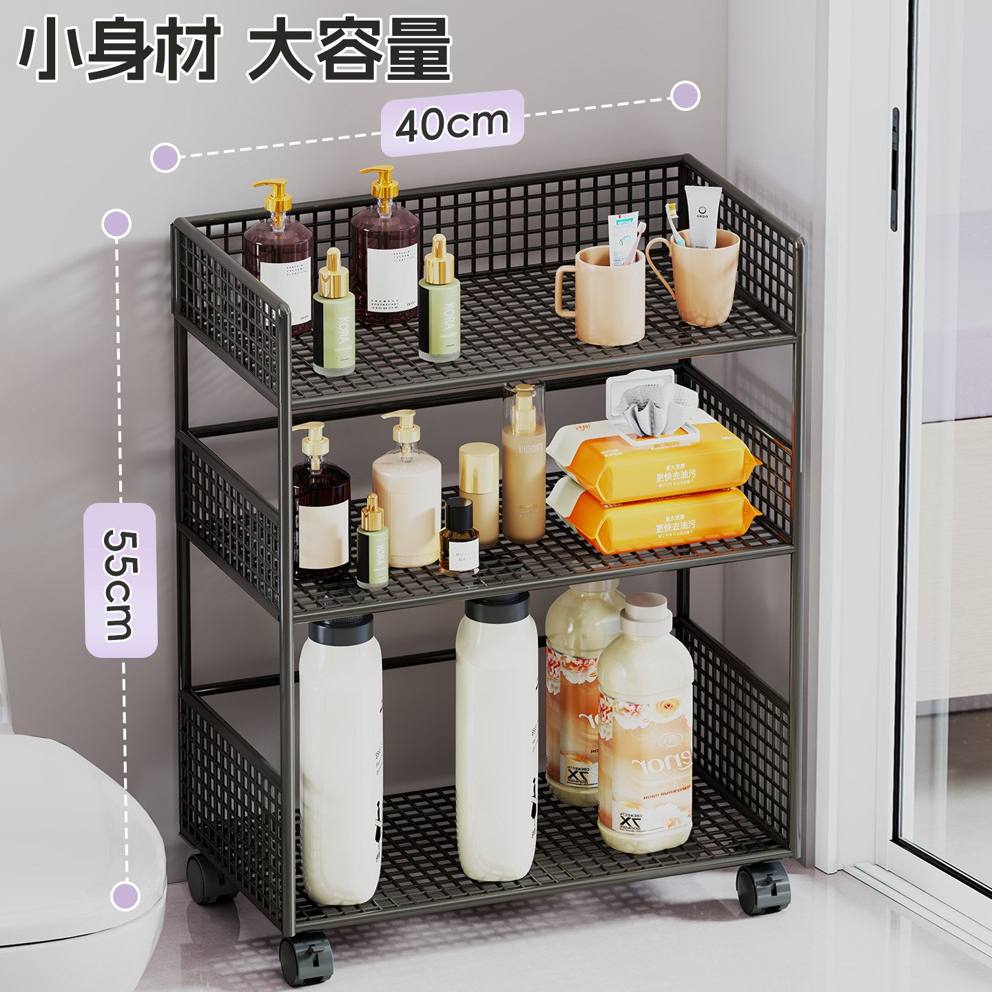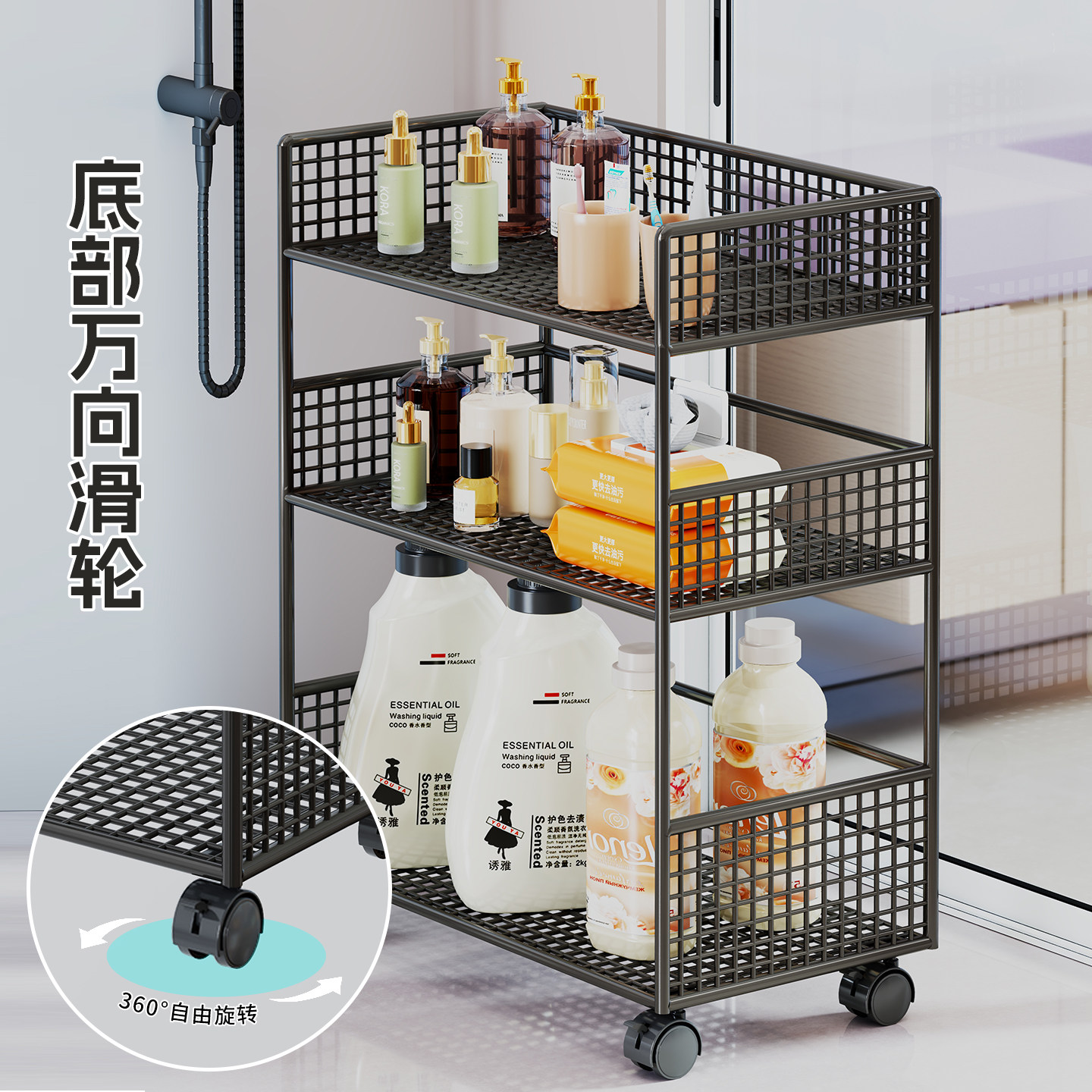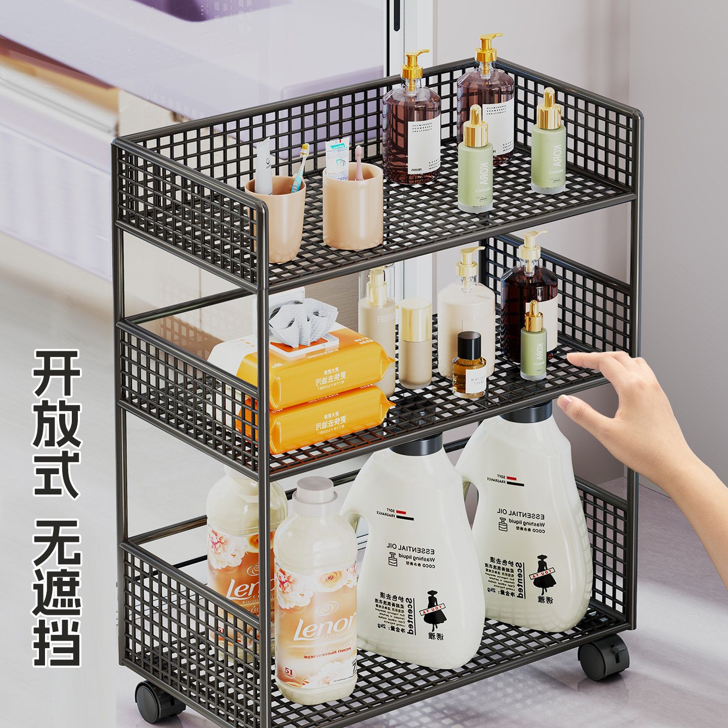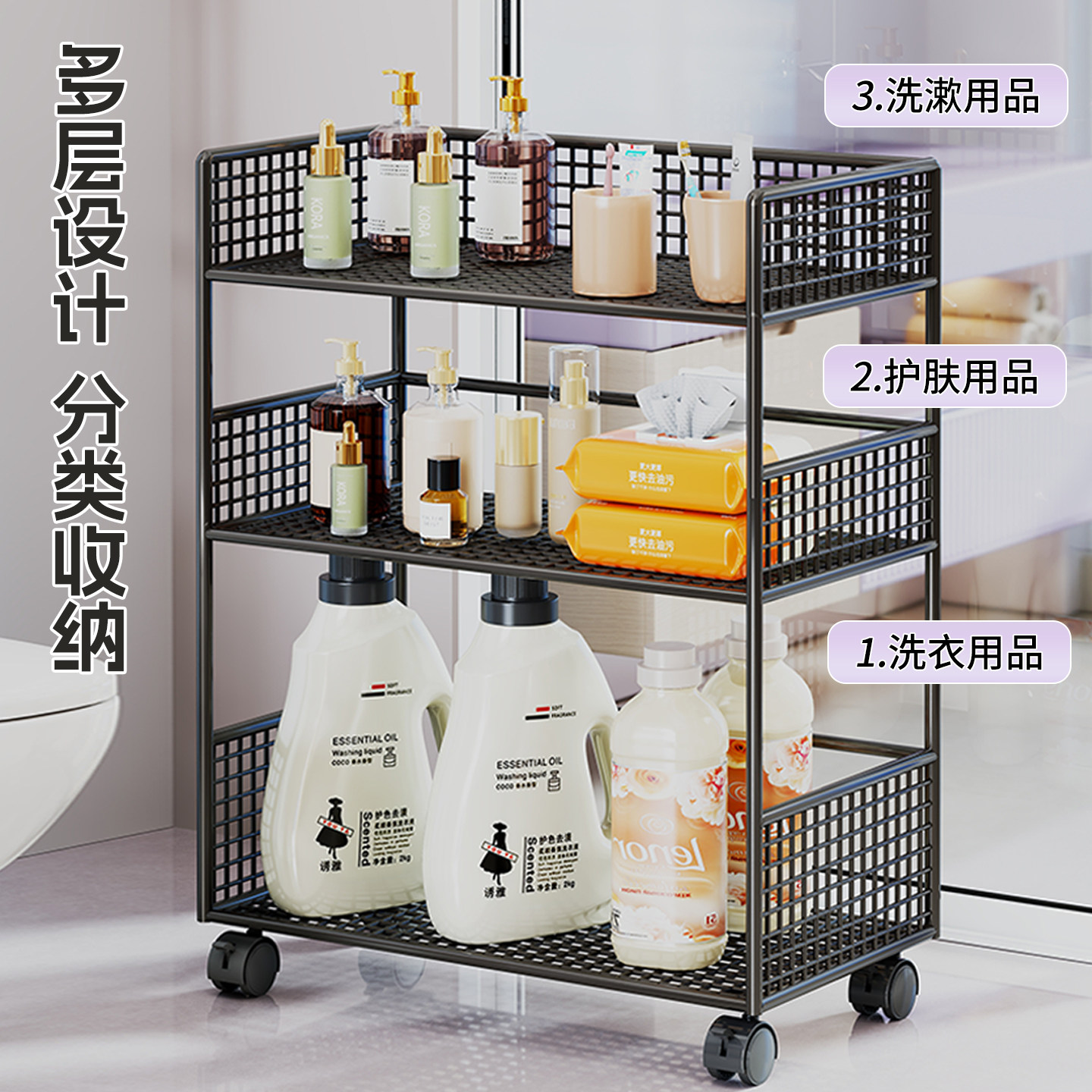 卫生间置物架浴室分层整理架洗衣机旁放置架落地多层洗衣液储物柜