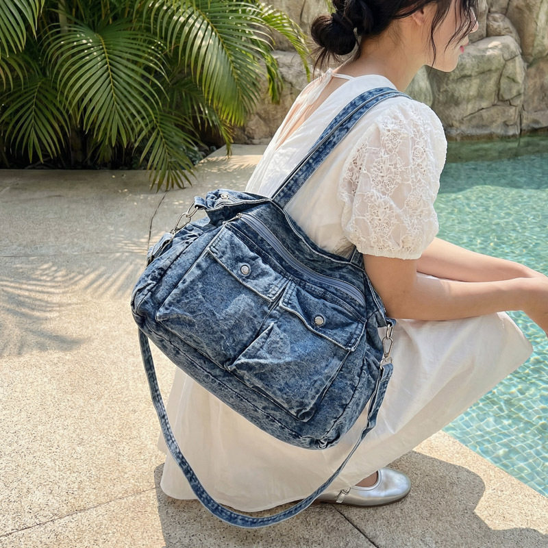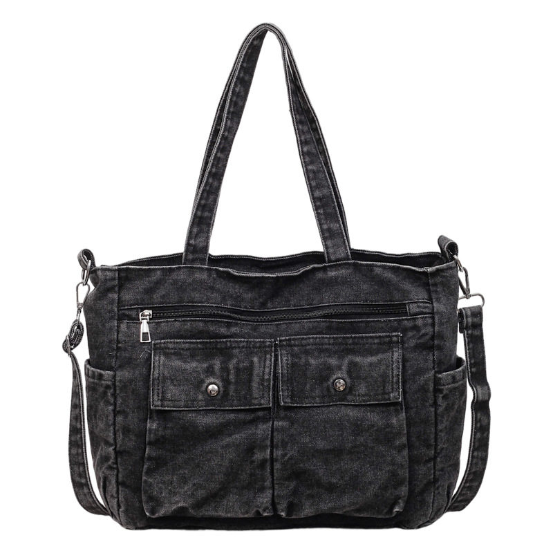 稻草人牛仔托特包大容量学生上课帆布袋小众休闲百搭通勤单肩包