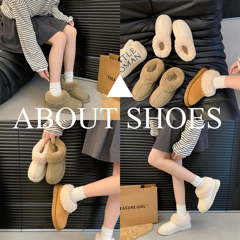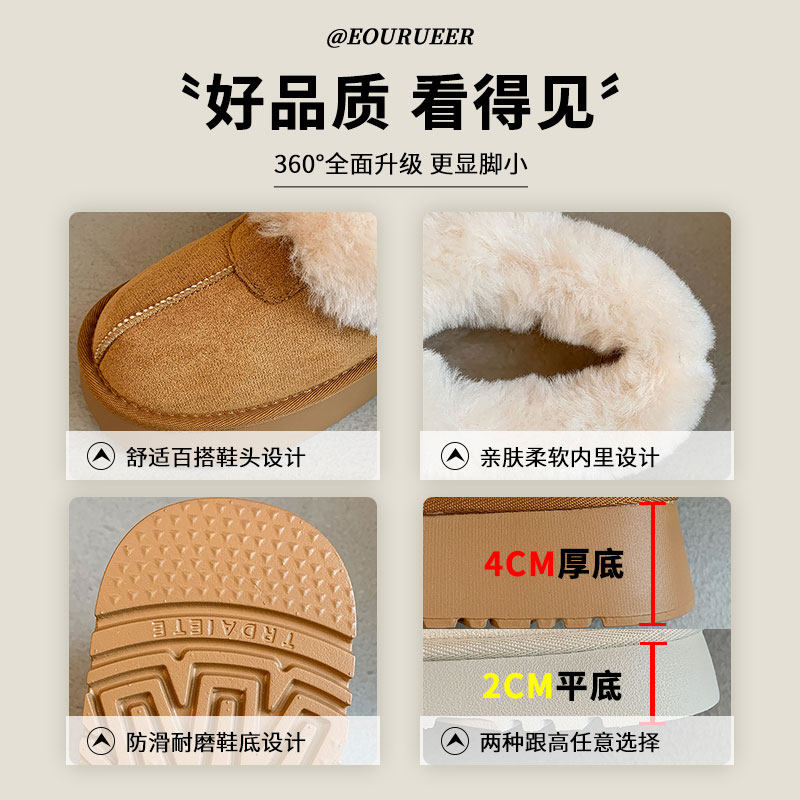 低帮厚底雪地靴女2025新款冬季懒人一脚蹬毛毛棉鞋加绒加厚女鞋子