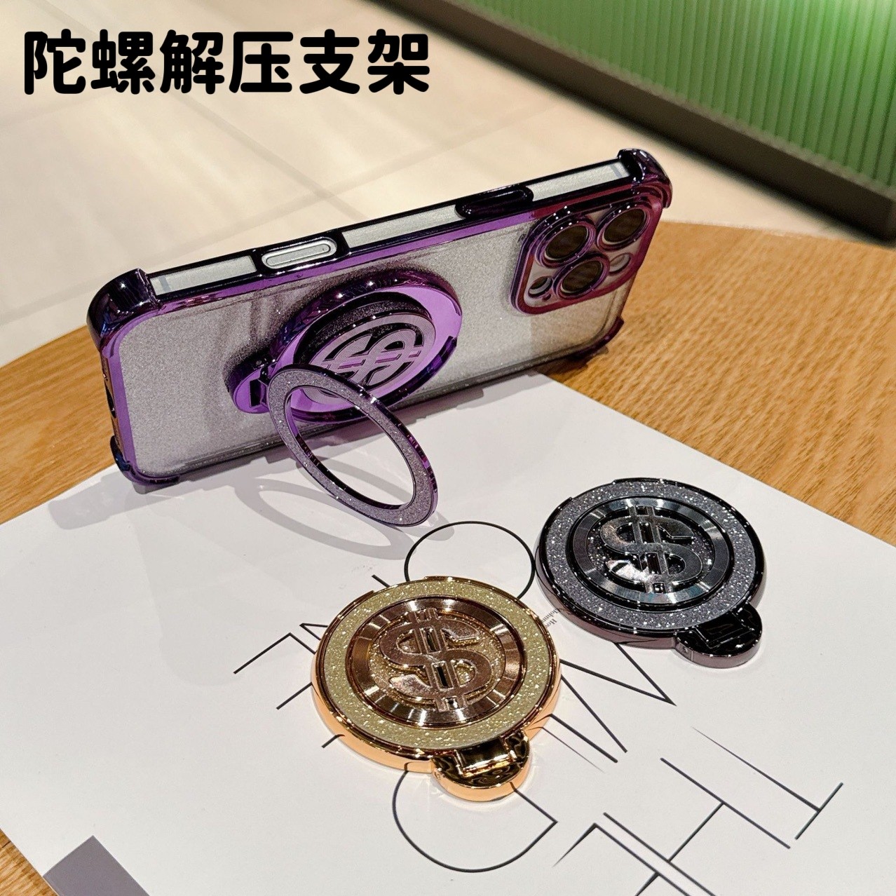手机支架旋转陀螺解压有钱黏贴式背贴手机壳背面指扣环追剧支撑架