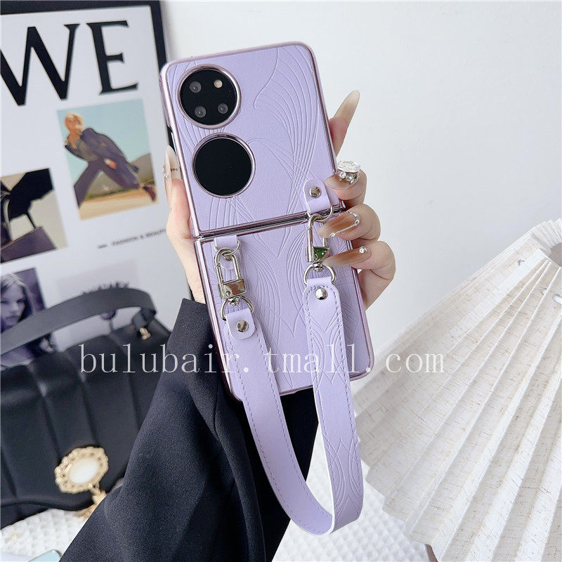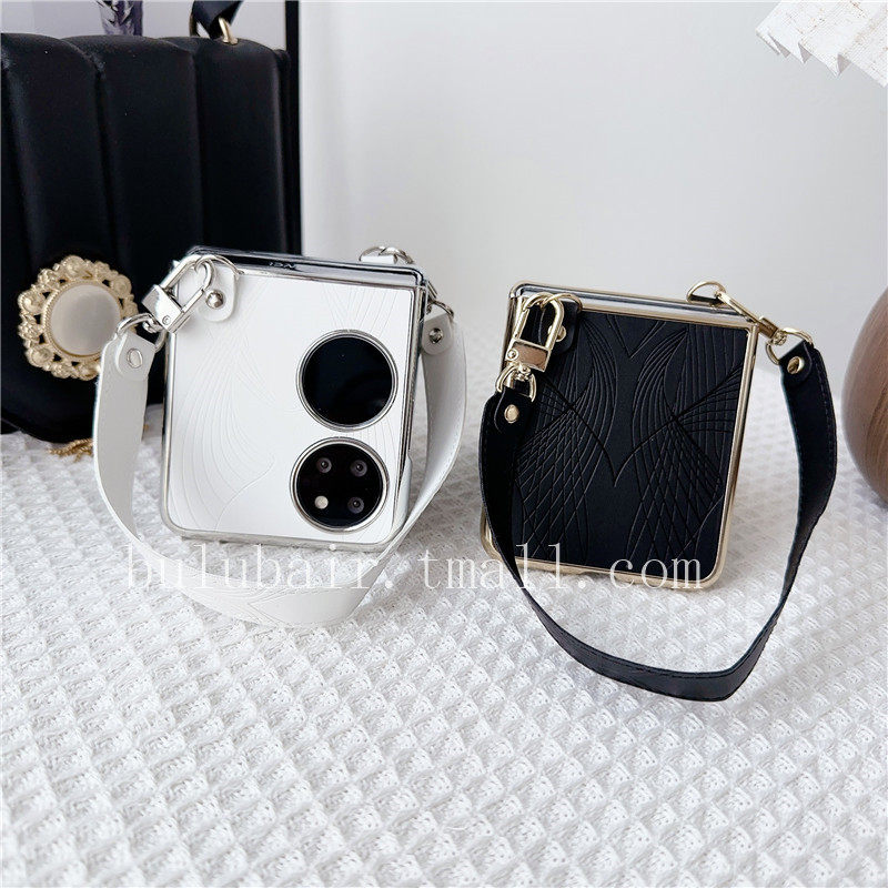 适用华为Pocket2手机壳折叠屏素皮p50pocket新款高级感全包超薄链条poket2保护壳pockets手提腕带保护套女