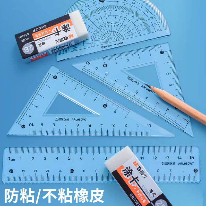 【全国26仓发货】晨光防粘套尺小学生专用四件套直尺三角尺量角器