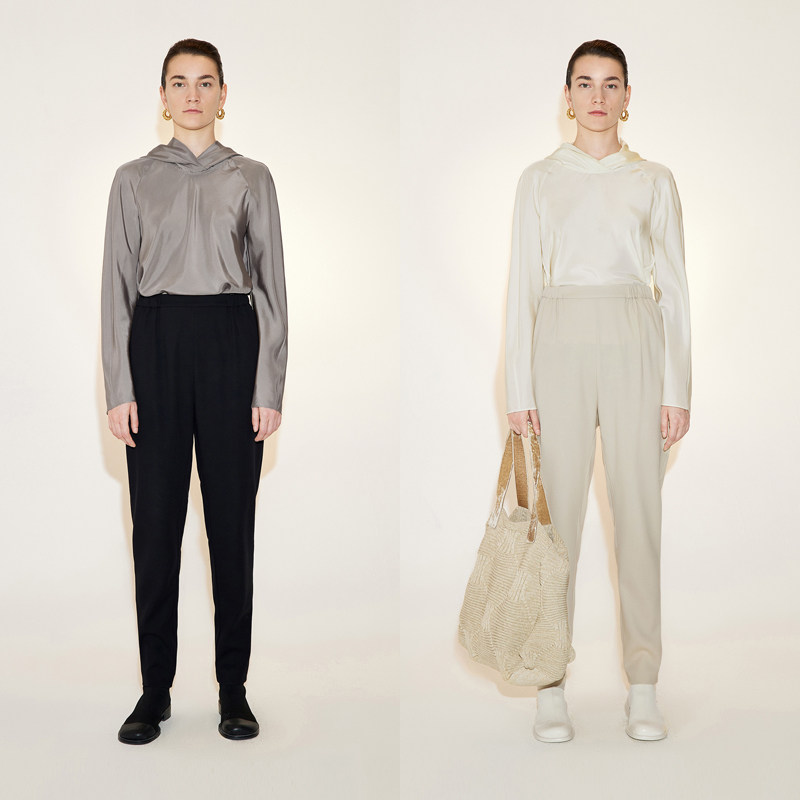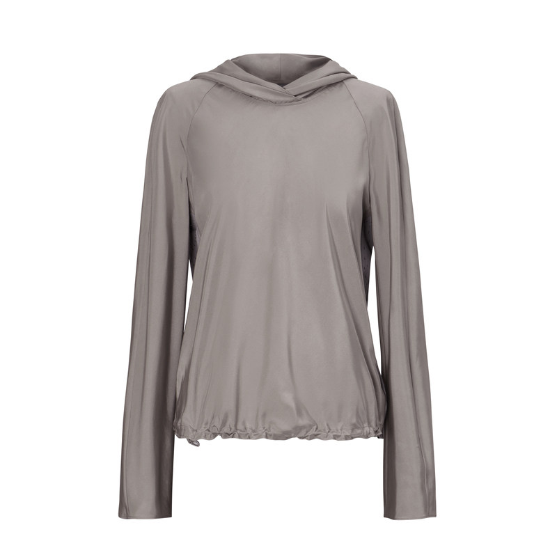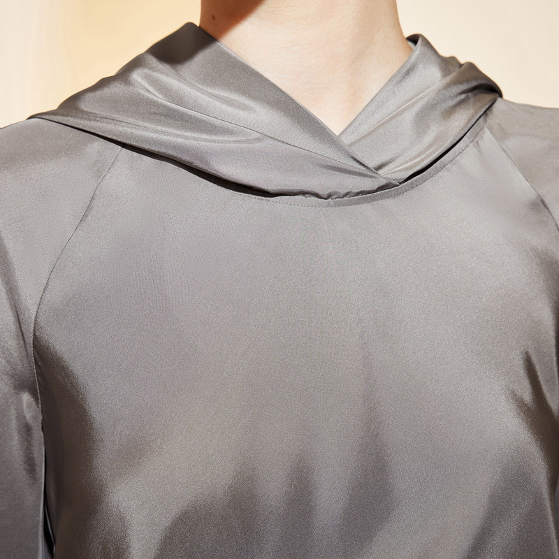 LES春季连帽衬衣女桑蚕真丝光泽感宽松休闲拼接长袖衬衫2N2212030