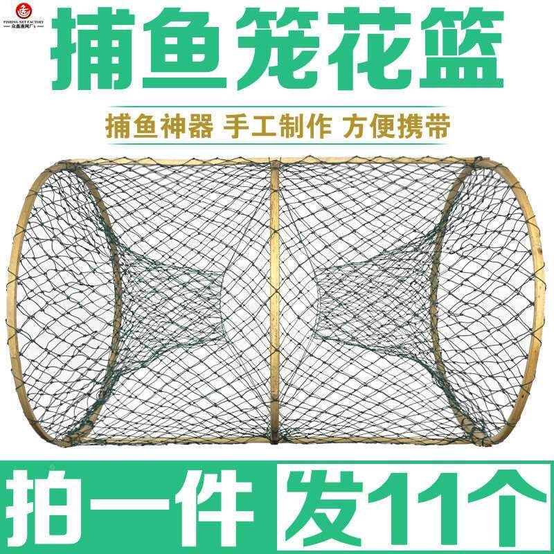 花篮鱼笼捕鱼网笼花蓝渔网甲鱼笼鳖笼圆形自动折叠抓鲫鱼工具黑鱼