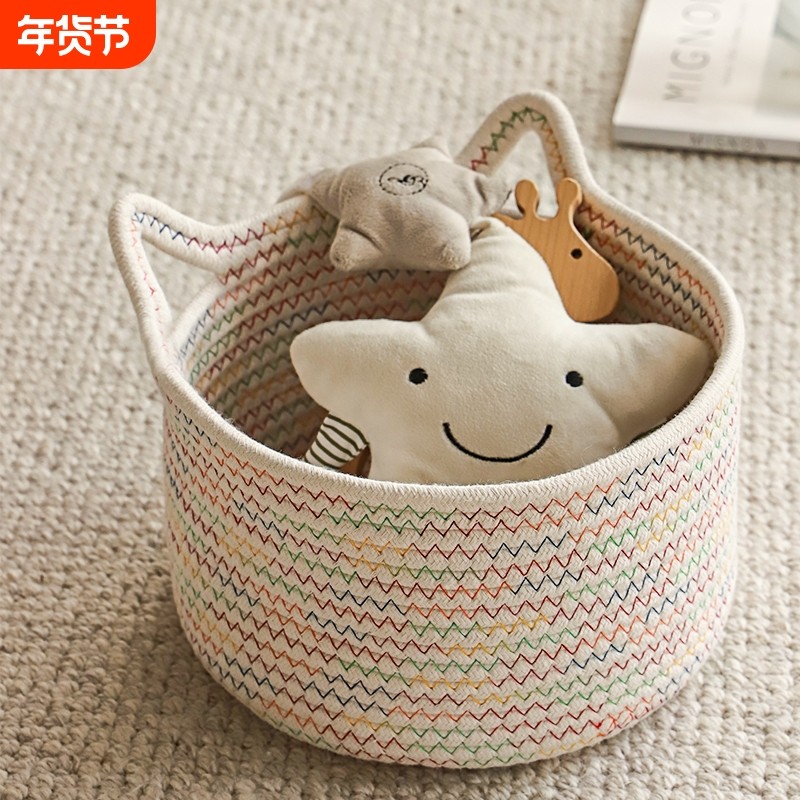 化妆品桌面收纳盒手工编织棉线收纳篮子口红零食杂物收纳筐玩具