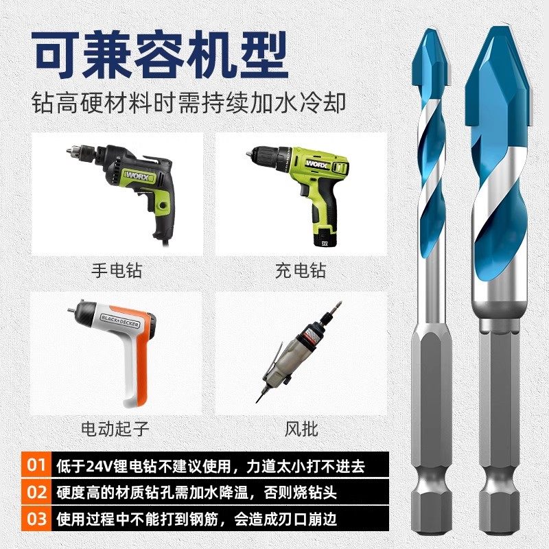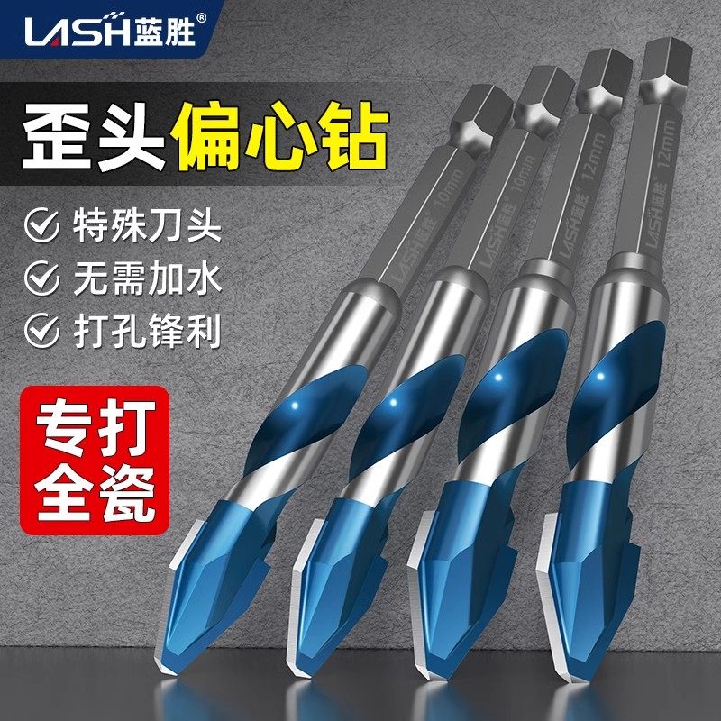 蓝胜瓷砖打孔钻头专用混凝土超硬合金歪头偏心钻干打全瓷霸王电钻