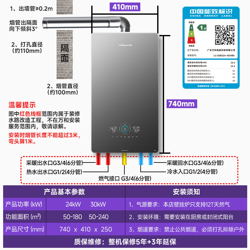 万和 NB5家用燃气壁挂炉两用恒温地暖供暖锅炉冷凝式一级能效