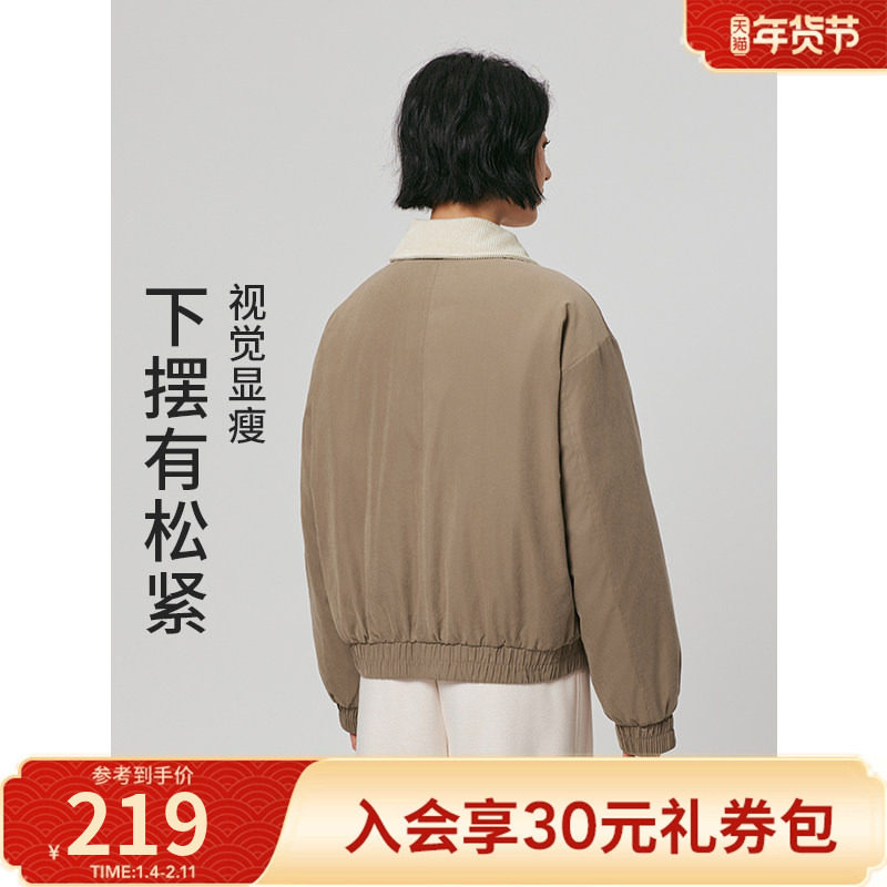 热风女士翻领夹克2025年冬季新款复古巴恩风宽松拼接休闲外套经典