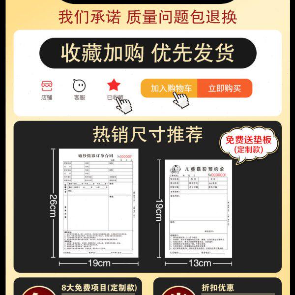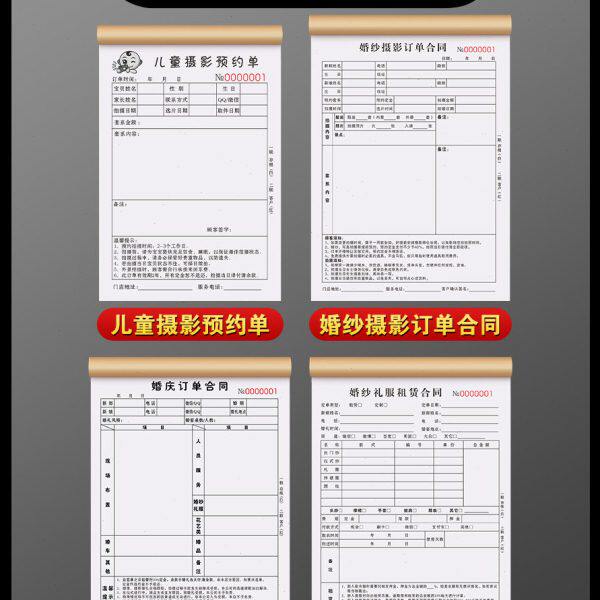 拍摄影楼收据单儿童预约婚纱押流取件合同拍照程单单据本订摄影金