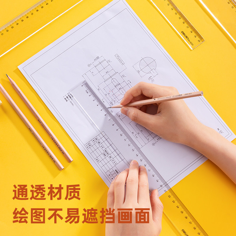 得力透明直尺20厘米直线画波浪线设计绘图尺15厘米曲线塑料刻度尺