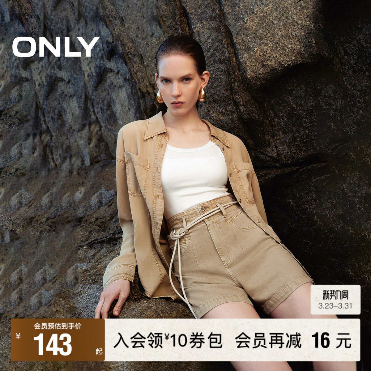 【ONLY奥莱】春夏新款时尚休闲废土风高腰A字牛仔短裤女
