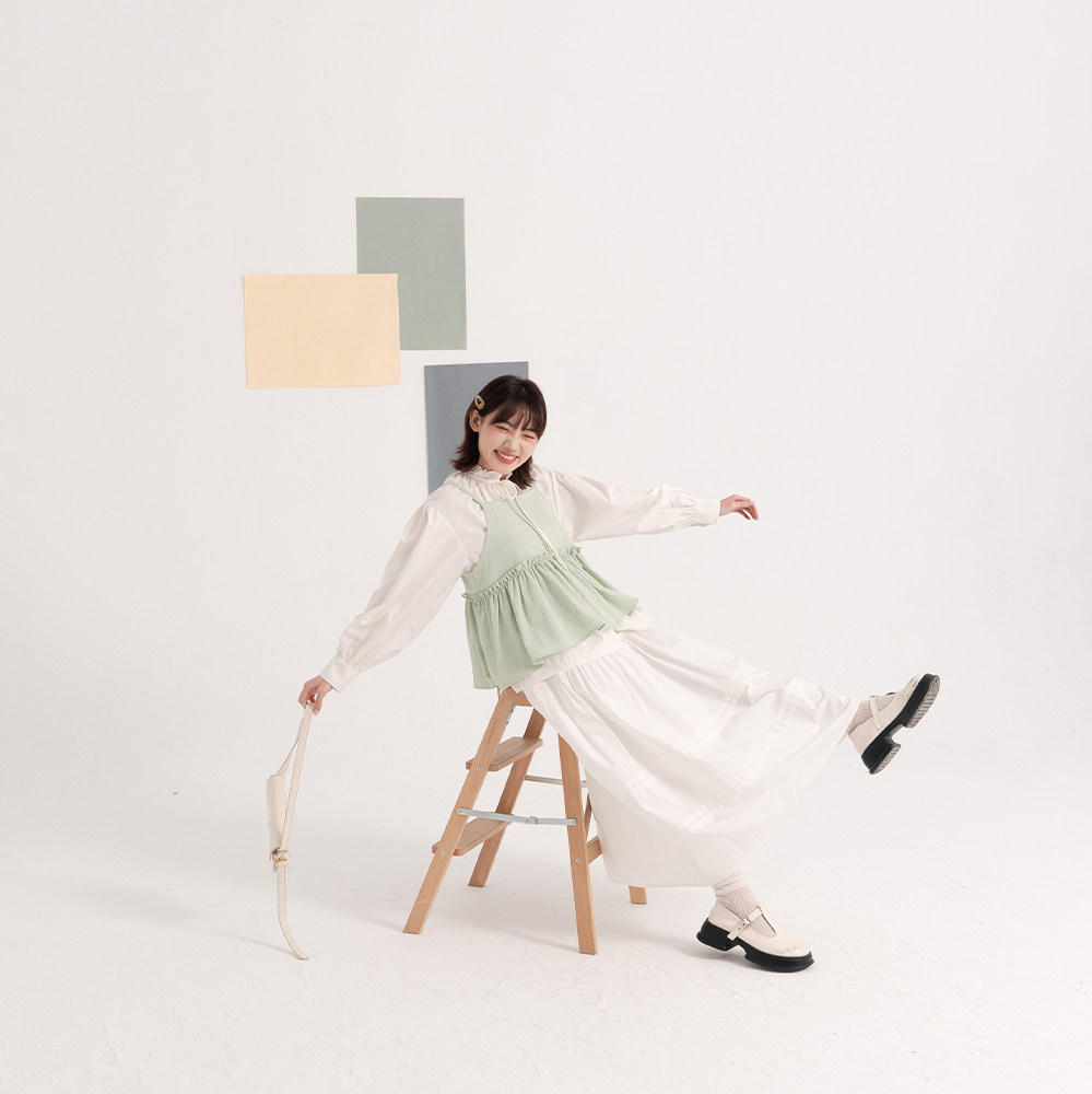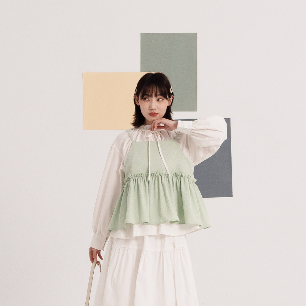 QUEENSHOP 2025秋冬新品女装荷叶缇花伞摆罩衫背心01098909