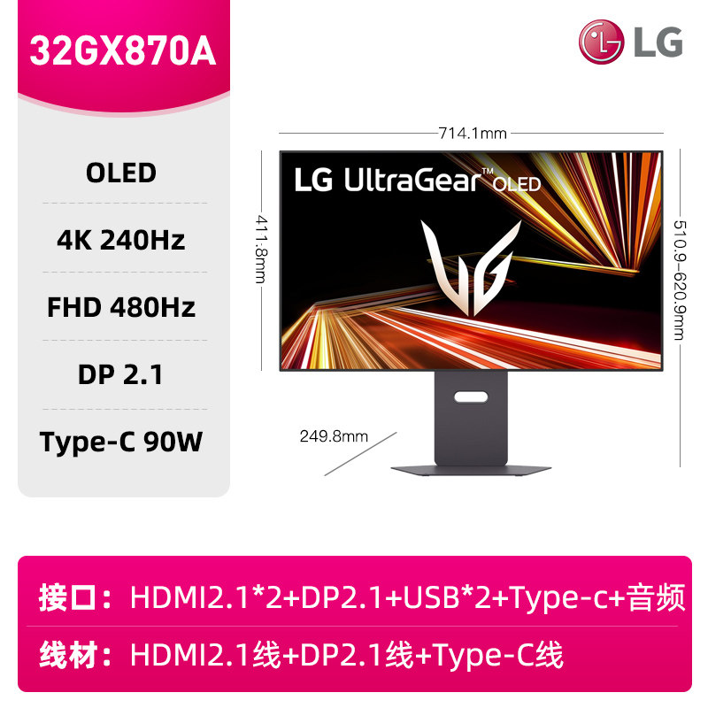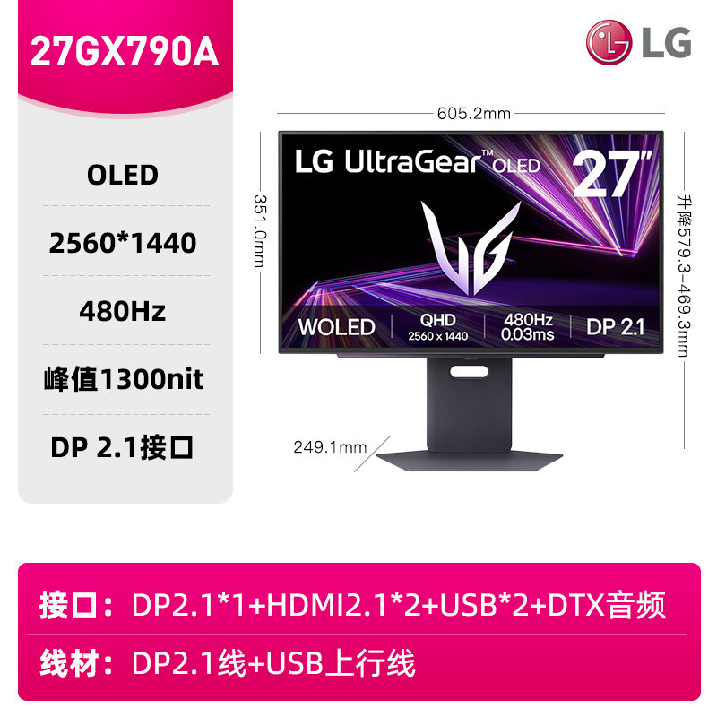 LG 27GX700A 27英寸OLED显示器 2K280Hz 高刷csgo屏幕 32GS95UV