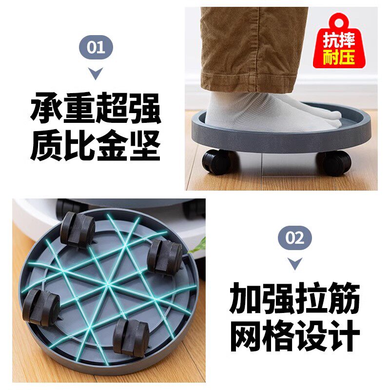 花盆托盘花加厚圆形带滚轮钢化树脂移动底座塑料底托滑轮万向轮