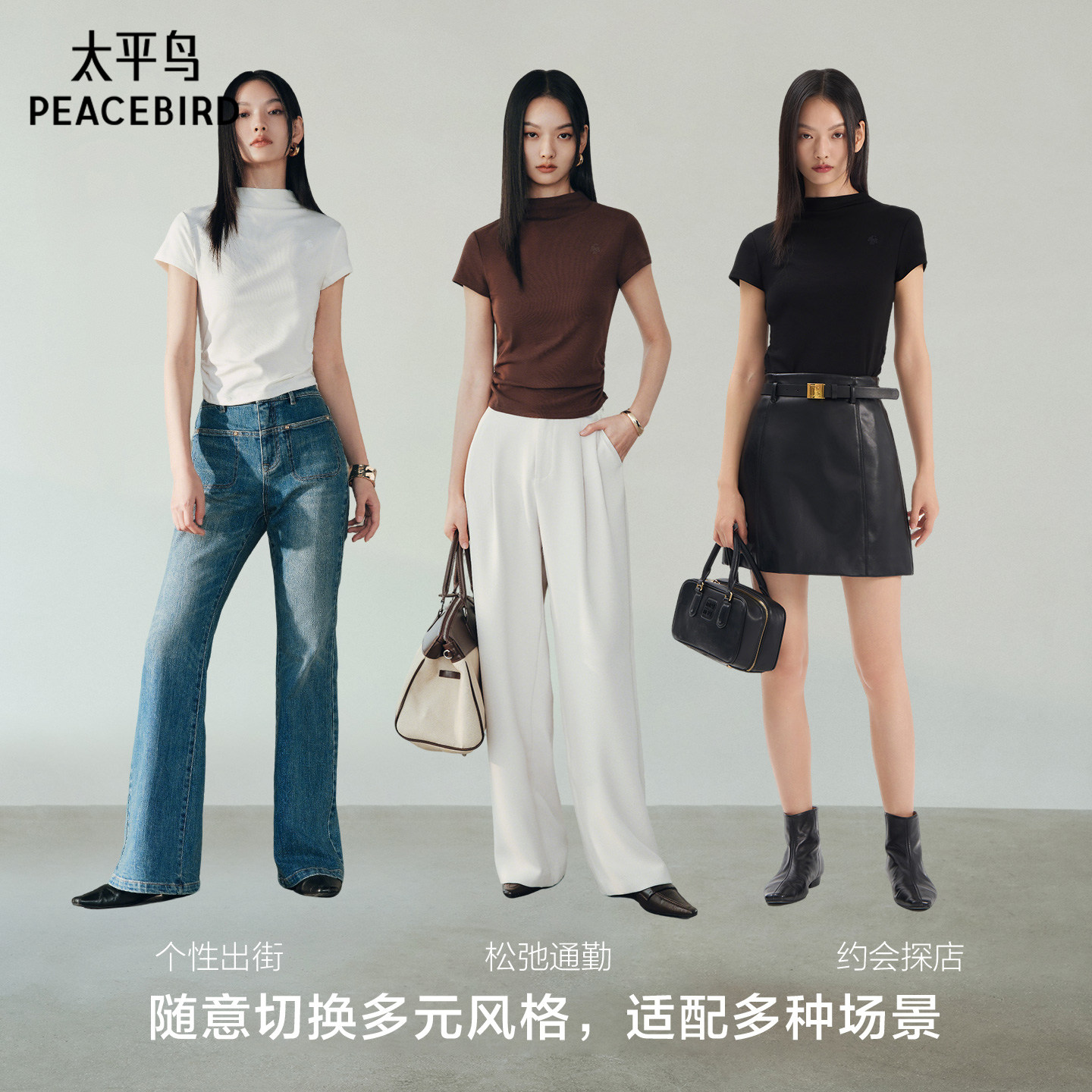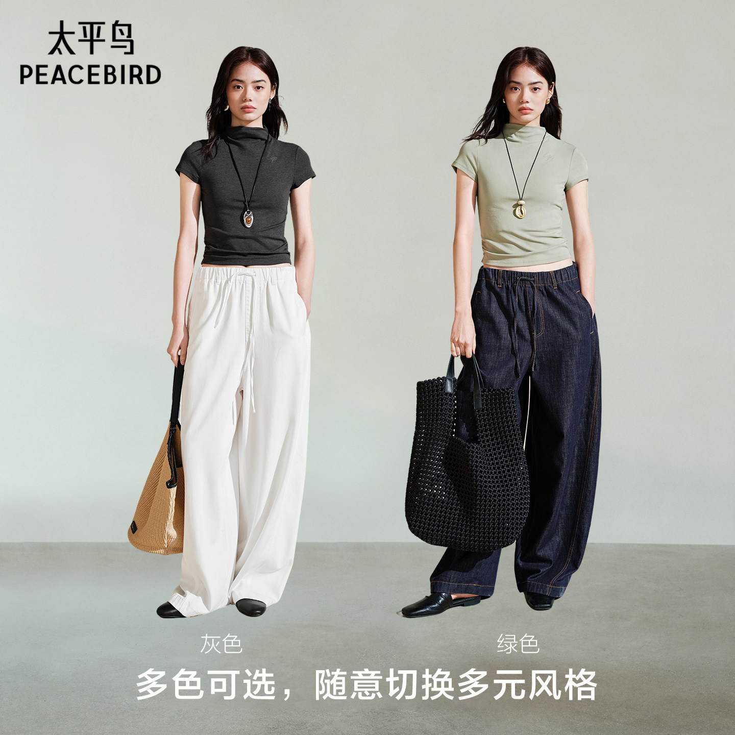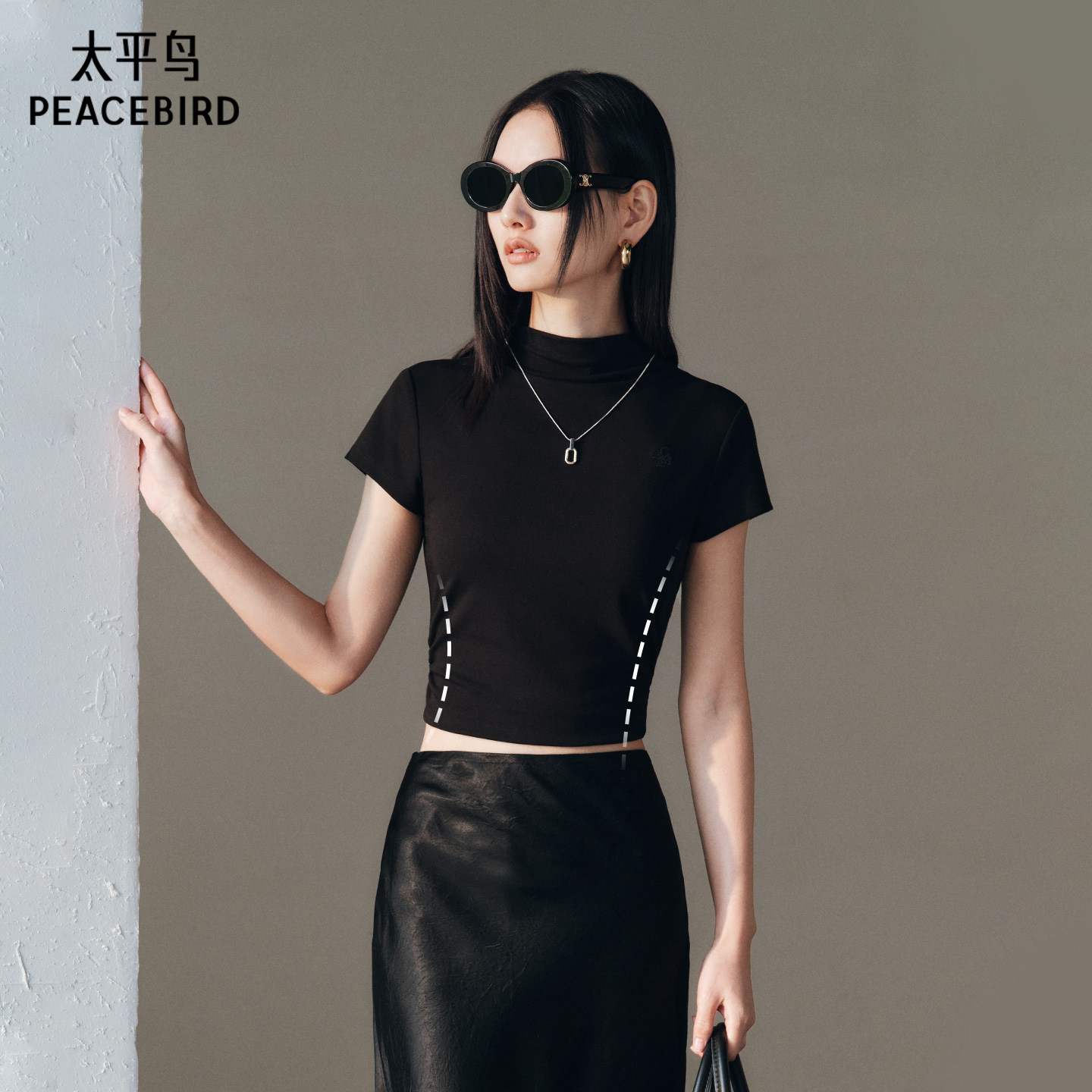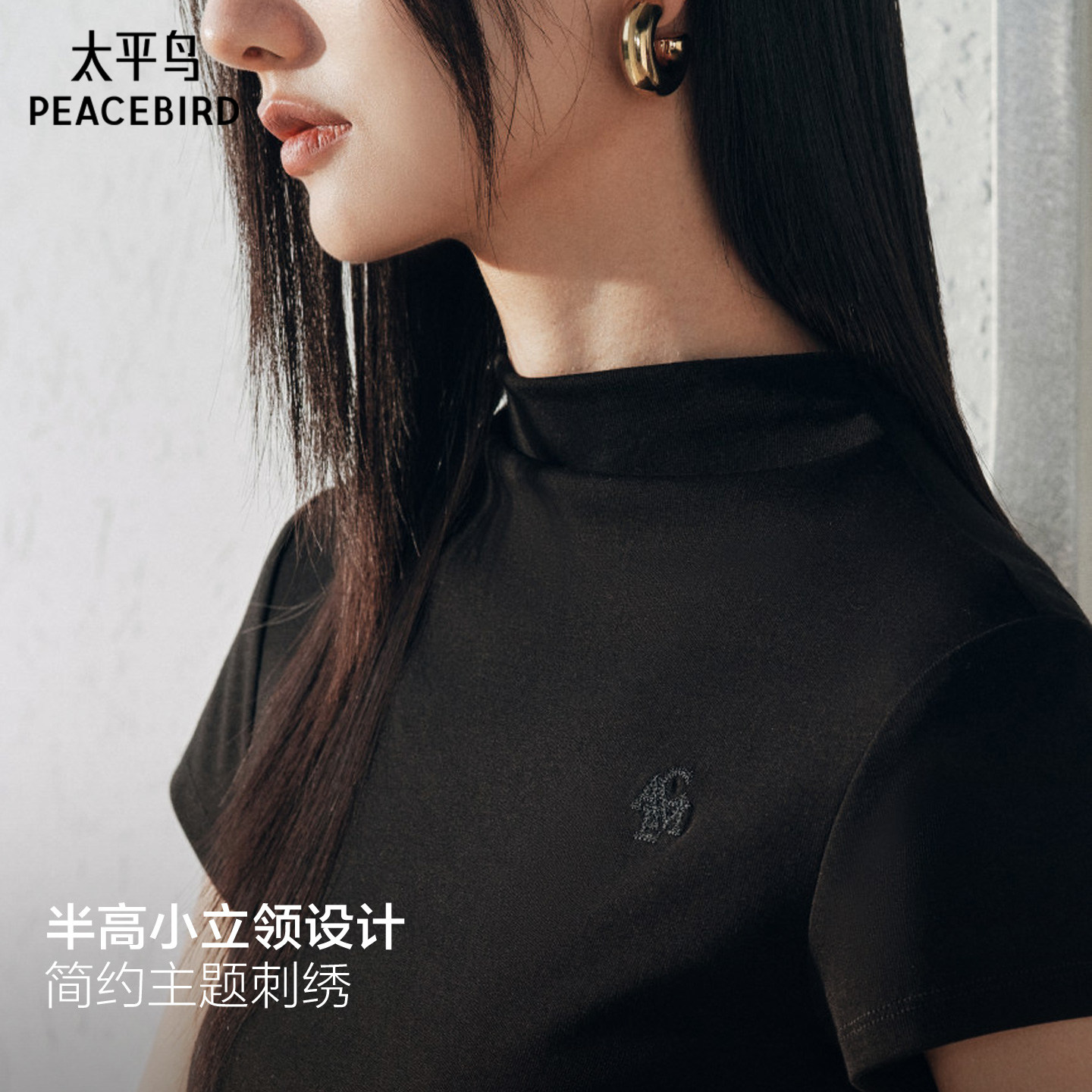 太平鸟半高领修身T恤女短袖2026夏款收腰法式气质短款上衣显瘦