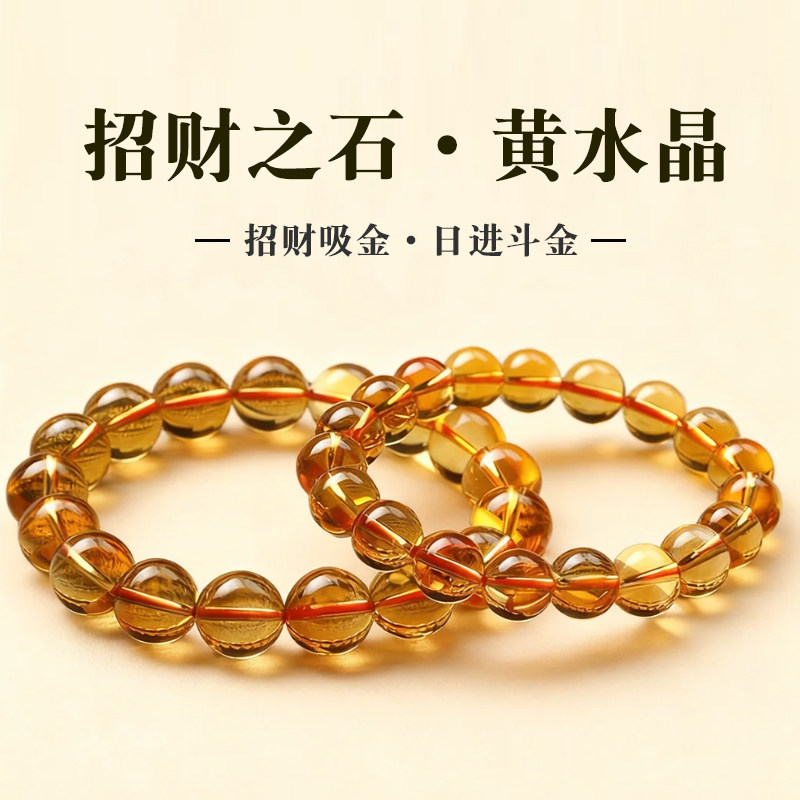 巴西天然黄水晶手串招财转运珠男女款暴力黄水晶手链情侣生日礼物